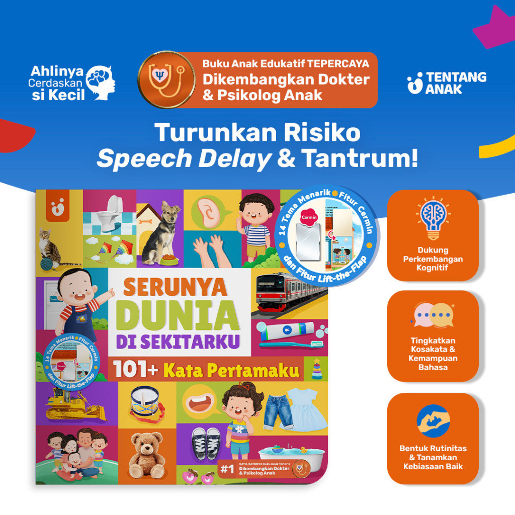 Tentang Anak - Buku Anak 101+ Kata Pertamaku | Lift-the-Flap & Cermin | Buku Pertama Anak Kurangi Risiko Speech Delay &