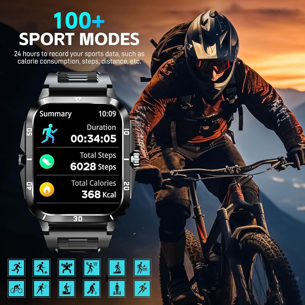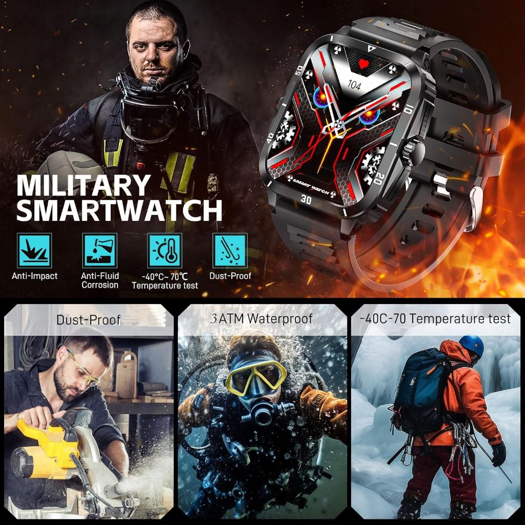 ENC Military Smartwatch for Men 1.96'' Big Screen Tactical , Jam Tangan Pria Smartwatch 430mAh Big Battery | Fitness Tra