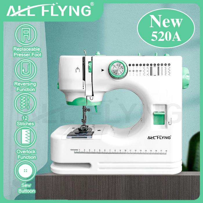 【ALL FLYING】MESIN JAHIT ELEKTRIK 520A PORTABLE DENGAN 12 POLA JAHITAN & FUNGSI OVERLOCK - MESIN JAHIT RUMAH TANGGA MULTI