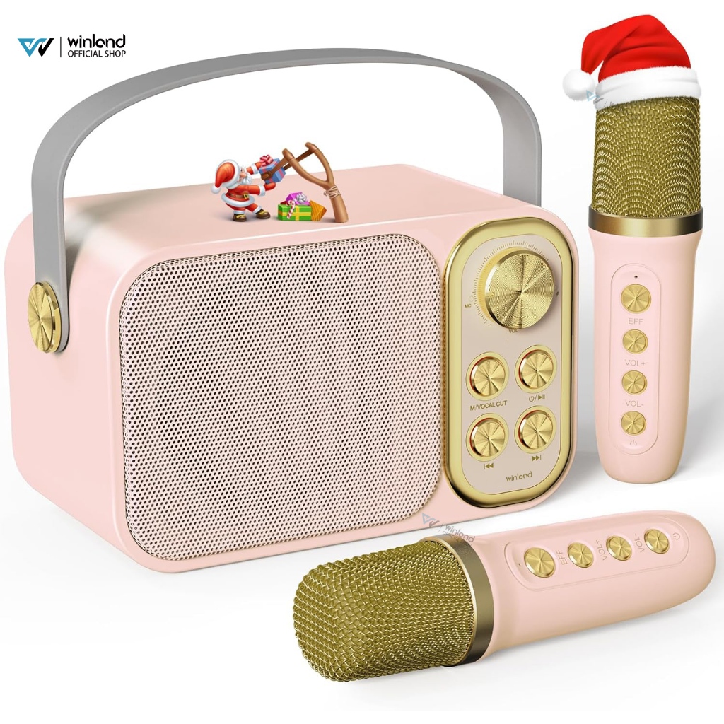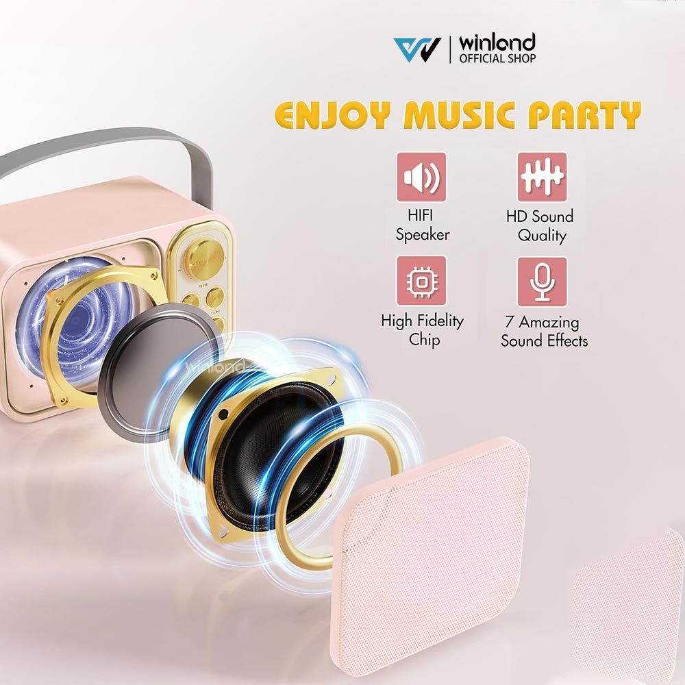 Winland Speaker Bluetooth Karaoke 1 set 2 Wireless Microphone Cute Wireless Lucu Portabel Luar Ran Speaker