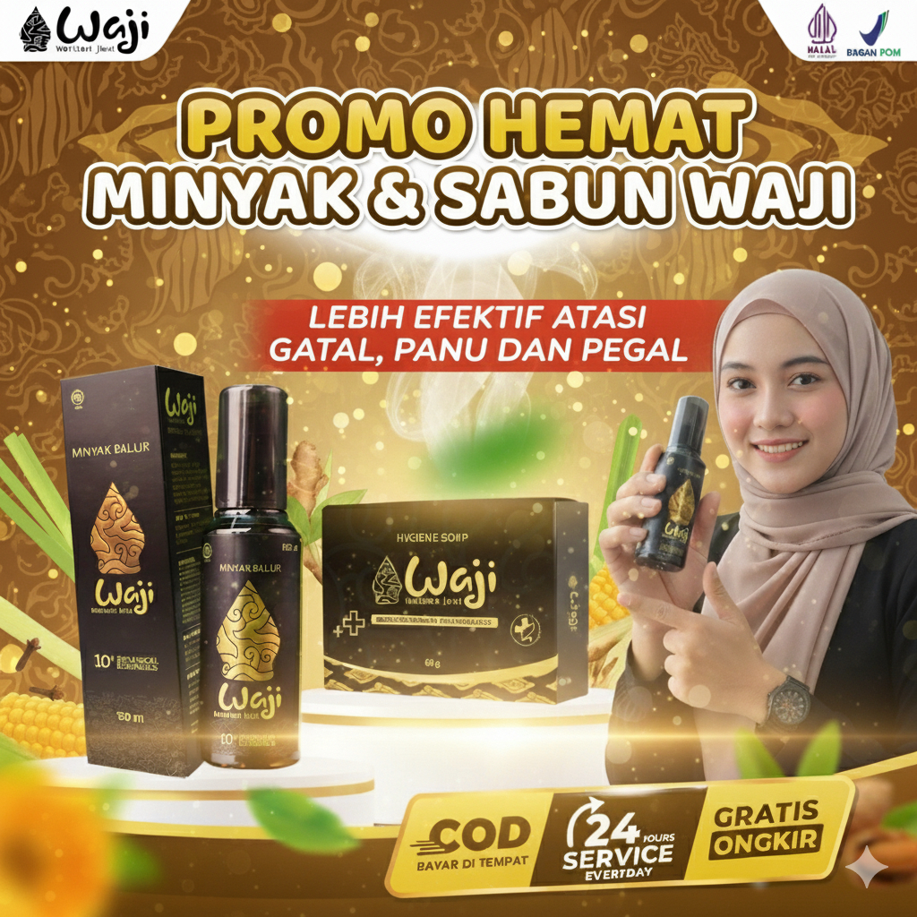 PAKET 1 Botol Minyak Waji + 1 Pcs Sabun Waji Obat Herbal Ampuh Bantu Mengurangi Gatal-Gatal Jerawat Punggung Panu Ruam K