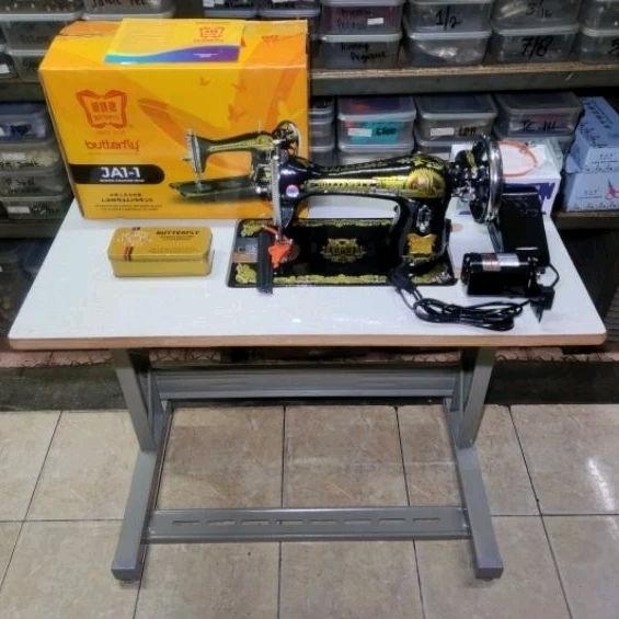 MESIN JAHIT BUTERRFLY JA1-1 DAN MEJA - KAKI T IMPORT KOMPLIT SET - Kkuning mengkilapAN BARU