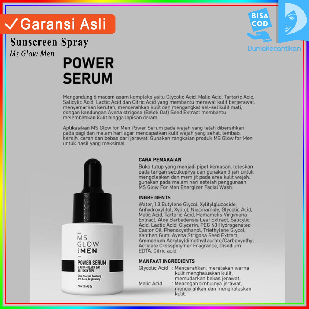 Ms Glow Men Facial Wash Serum Wajah Sunscreen Spray MsGlow For Men Cream Wajah Paket Perawatan untuk Cowok Skincare Pria