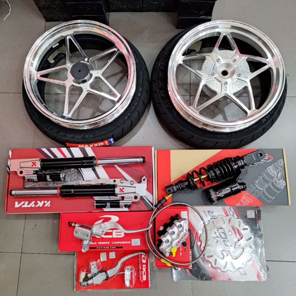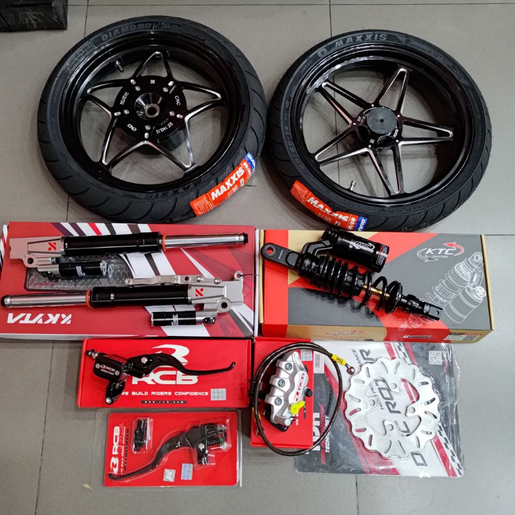 Paketan Full Set lengkap master rem RCB E3 Kanan kiri 14mm + Kaliper RCB 2 Piston + Selang rem 90cm + Disc +Shockbreaker
