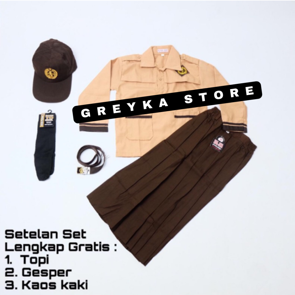 Setelan Super Lengkap Pramuka Siaga Seragam Sekolah SD Perempuan BAJU PANJANG ROK PANJANG
