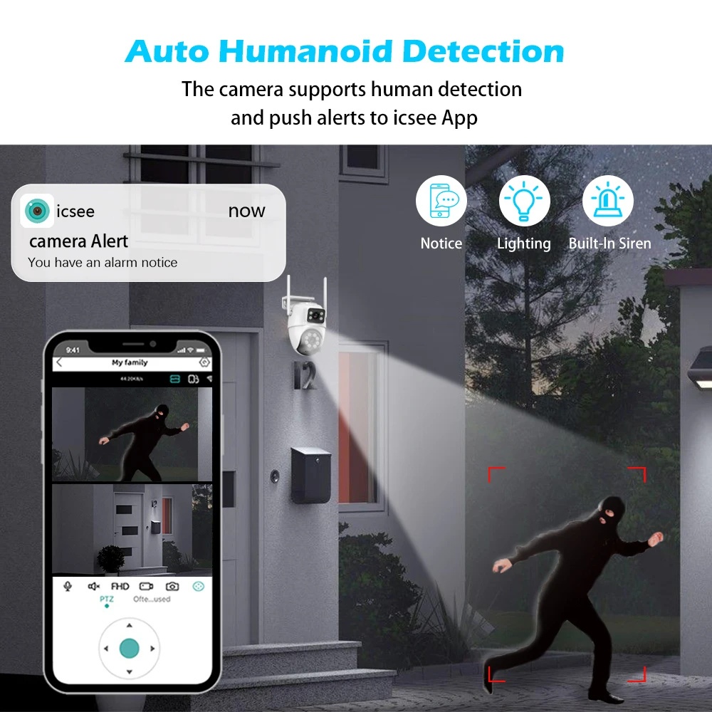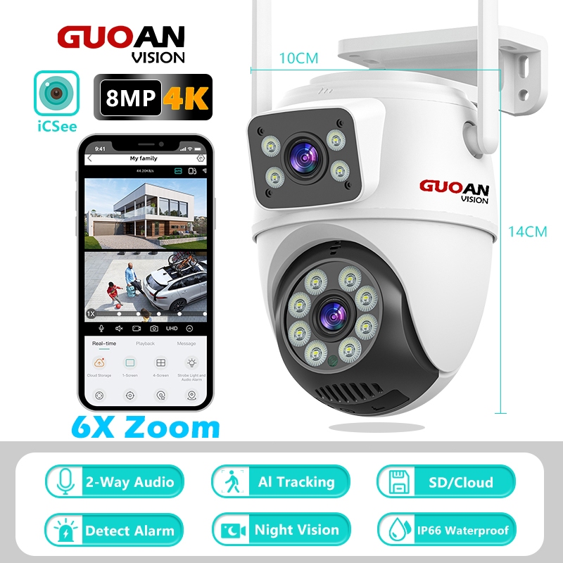 𝐏𝐑𝐎𝐌𝐎 GUOANVSION 8MP CCTV Kamera 6X Zoom ICSEE PTZ Pelacakan Humanoid Lensa Ganda WiFi iP66 Outdoor Surveillance