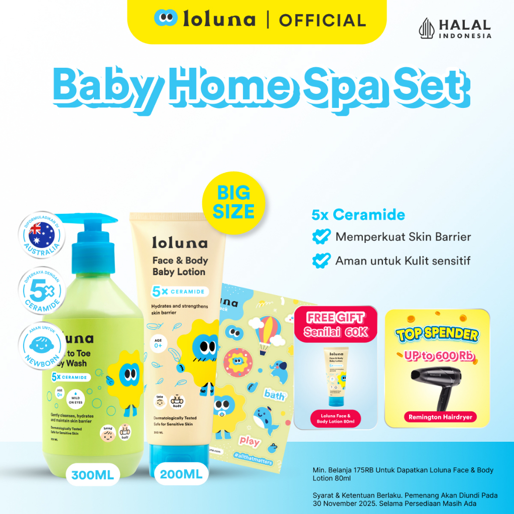 Loluna Head to Toe Wash 300ml + Face & Body Lotion 200ml/Sabun Sampo Lotion Perawatan Kulit Bayi Newborn dan Anak/5x Cer
