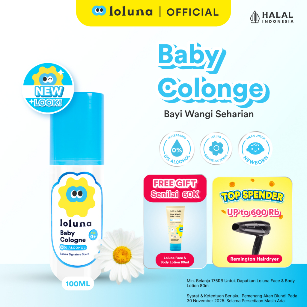 Loluna Baby Cologne 100ml - Parfum Bayi & Anak 0% Alcohol dan Wangi Premium Khas Loluna Tahan 8 Jam+ - Aman untuk Kulit