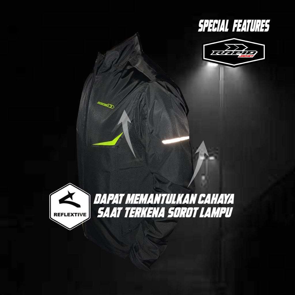 Jacket RAPID FLASH jaket motor harian terbaru berventilasi anti gerah, anti air dan anti angin bahan parasut premium JAS