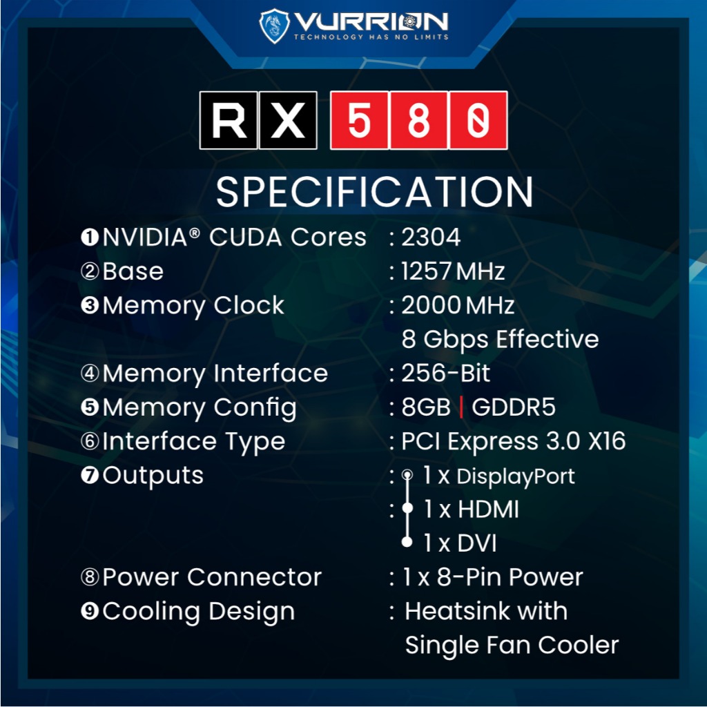 VGA AGS VURRION AMD RADEON RX 580 8GB GDDR5 256bit REAL CAPACITY
