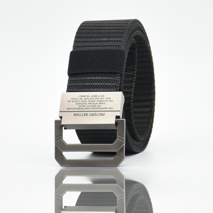 YH029 - Ikat Pinggang Pria Nilon Kanvas Kepala Gesper Taktikal Berbahan Besi Dua Ring - HITAM