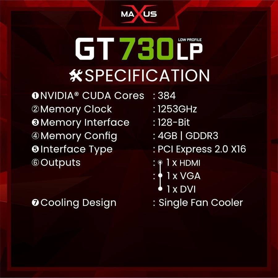 VGA GEFORCE GT 730 4GB GDDR3 128 BIT Low Profile / VGA 4GB GEFORCE GT 730 Maxus
