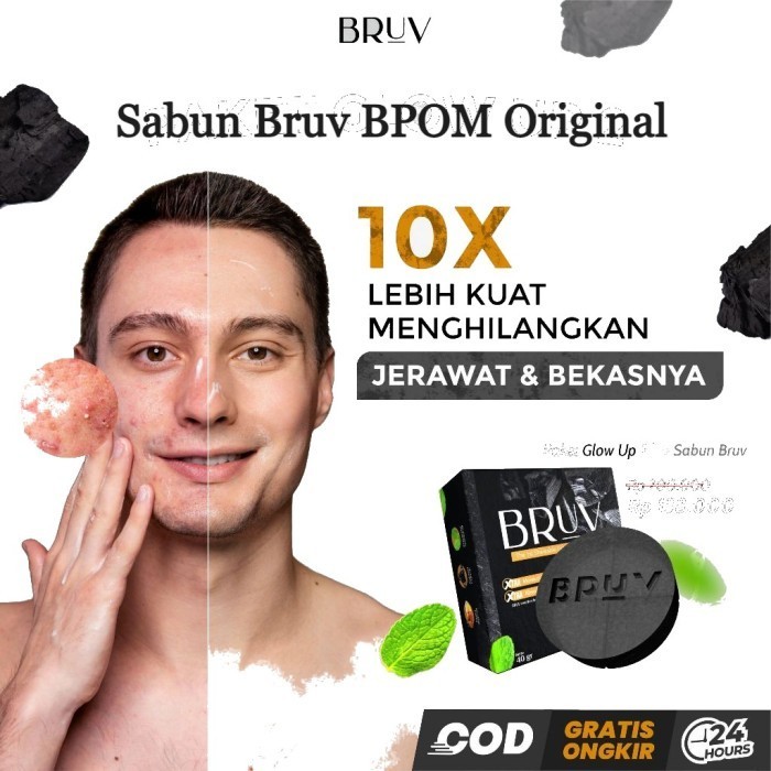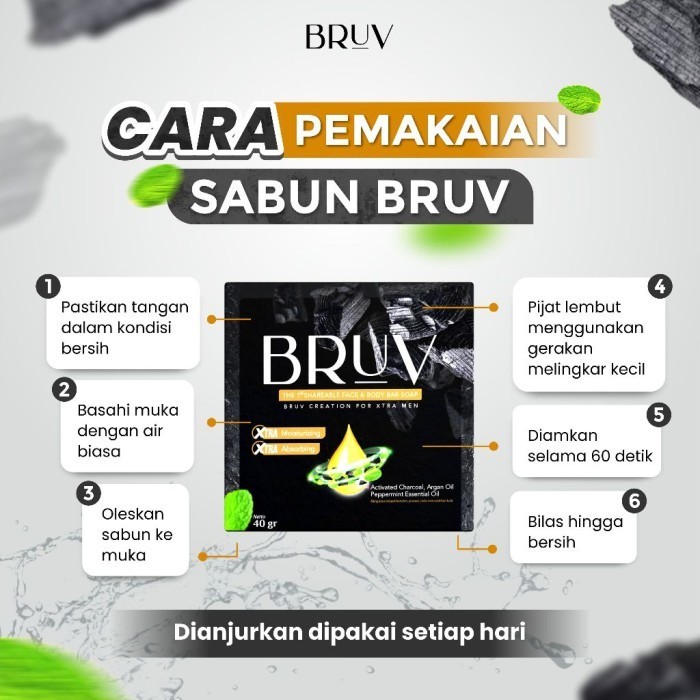 BRUV Sabun Wajah Pria Ampuh Atasi Masalah Jerawat Kusam Komedo Bundling 3 Pcs Cleansing Charcoal Argan Oil Sabun Batang