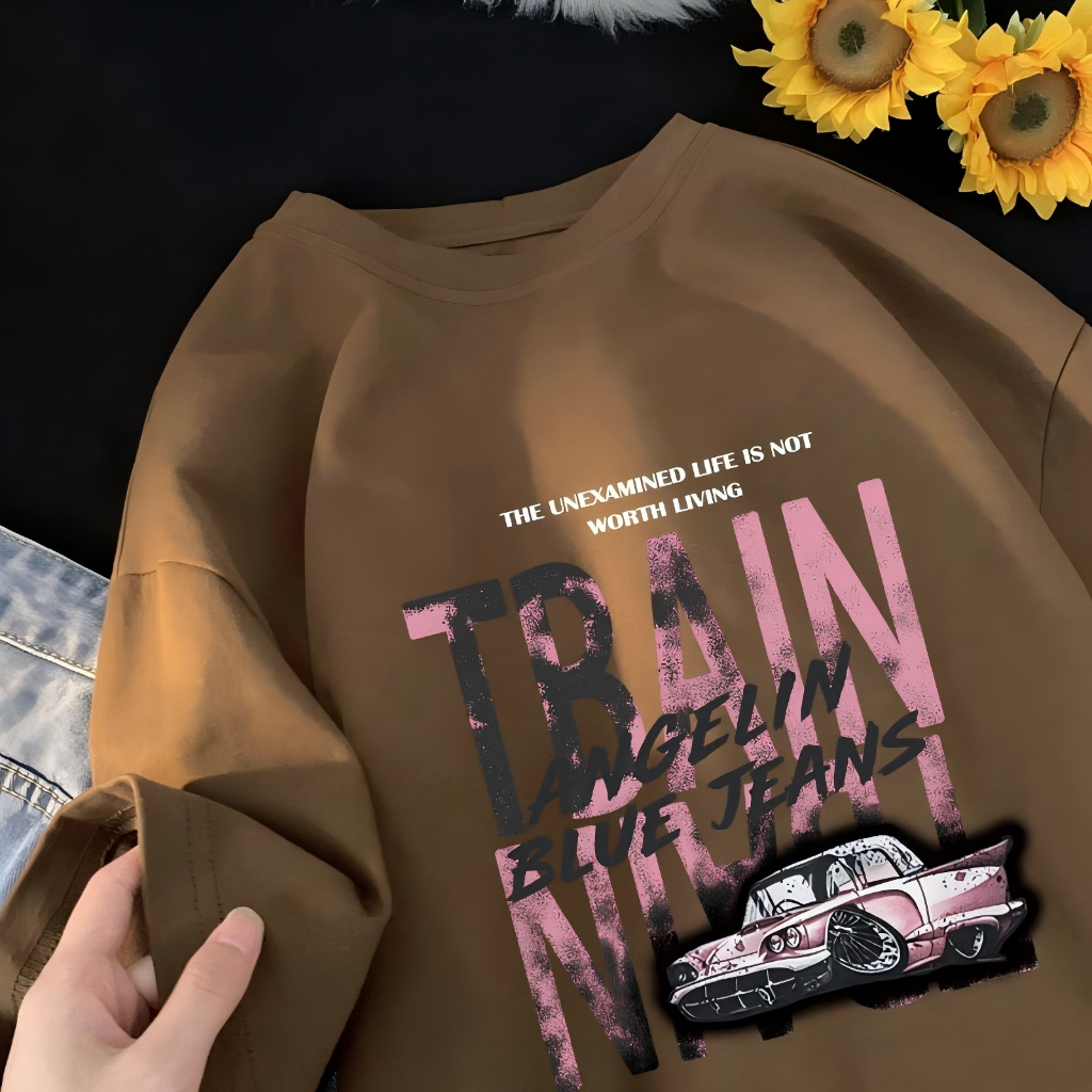 BAJU KAOS T-shirt Oversize Pink cart| Kaos baju Wanita pria/124 KAOS WANITA KEKINIAN BAJU WANITA TERBARU