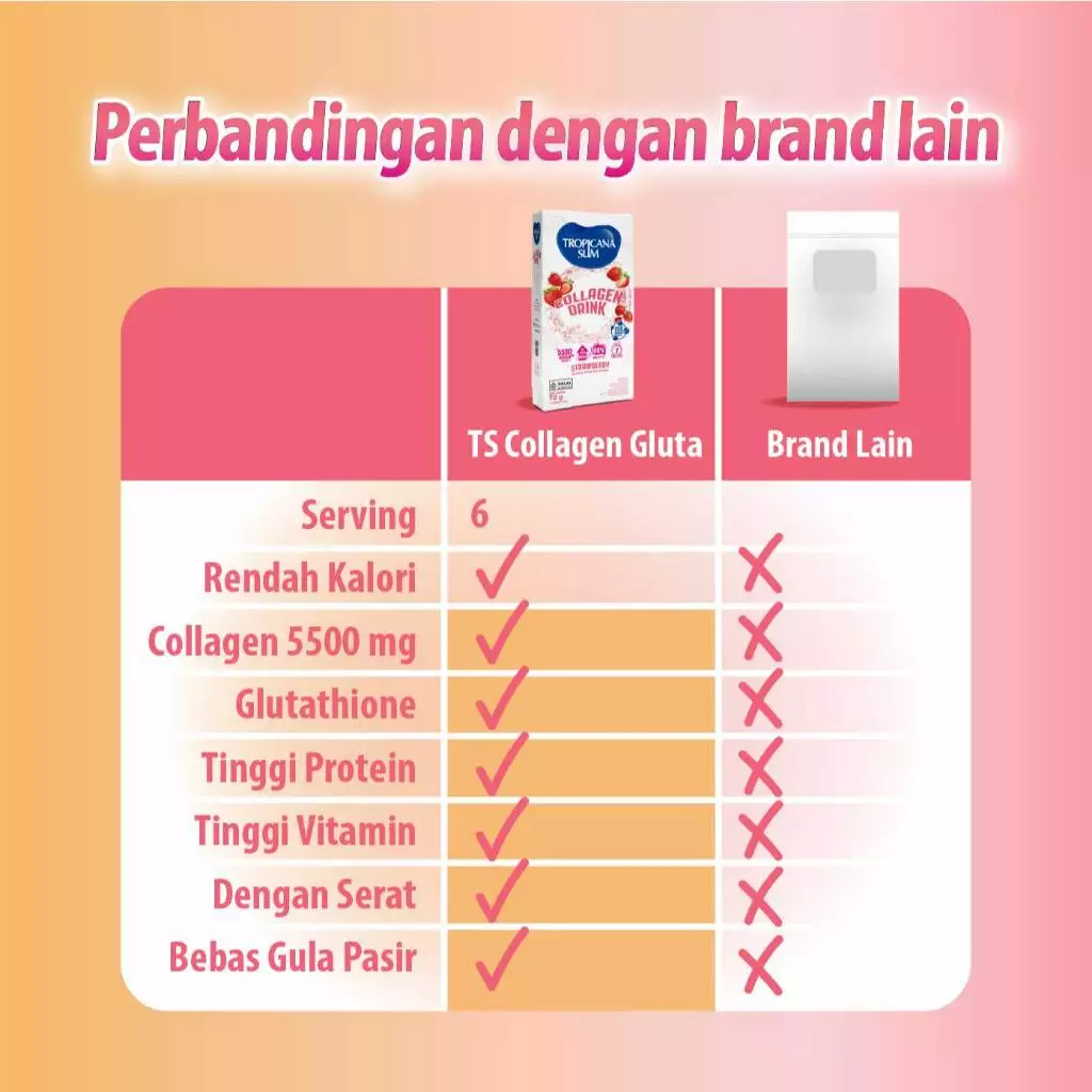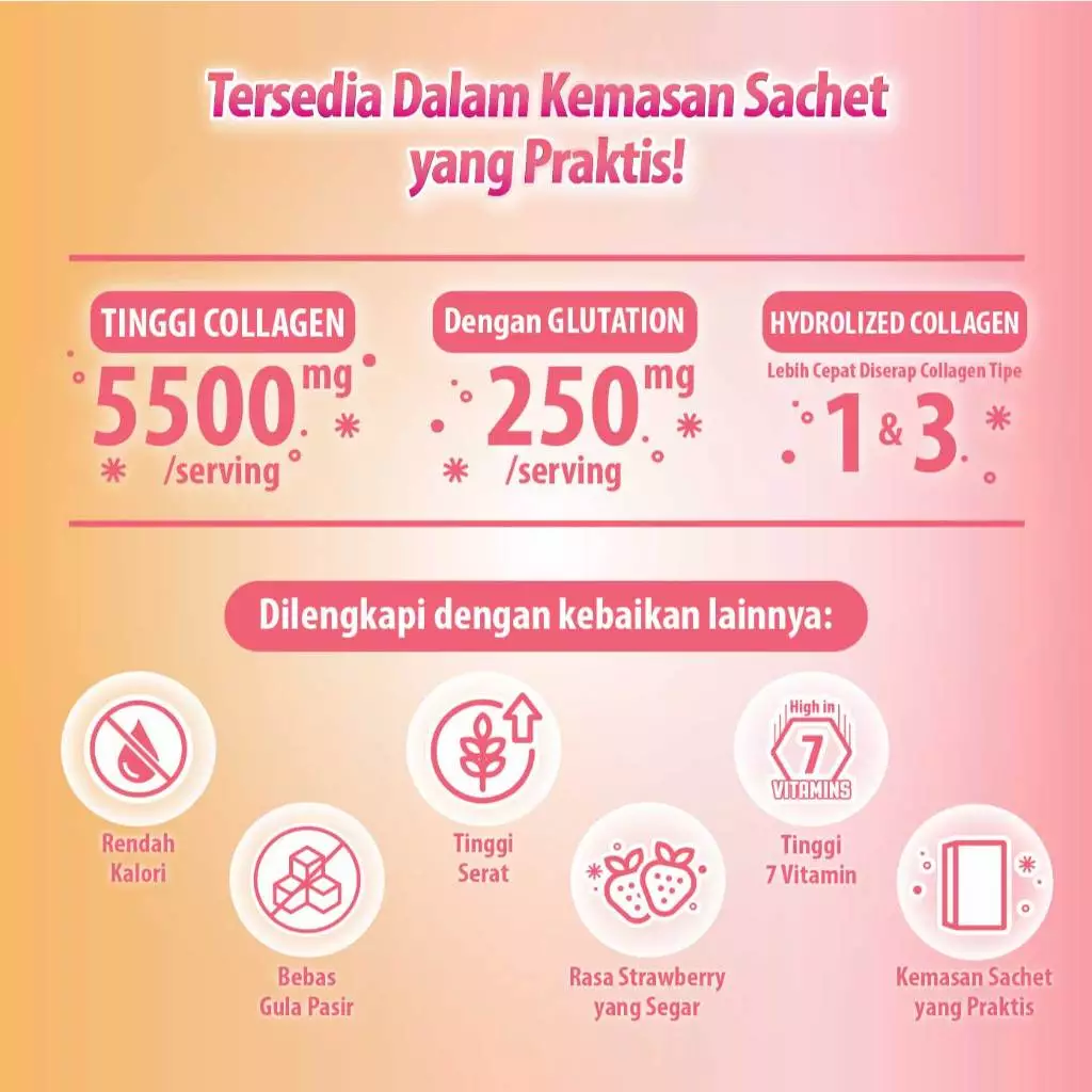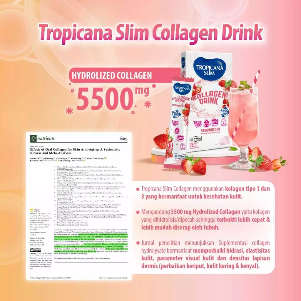Tropicana Slim Collagen Drink Strawberry Stick (6 sachet) - Kolagen Bebas Gula dengan Glutation