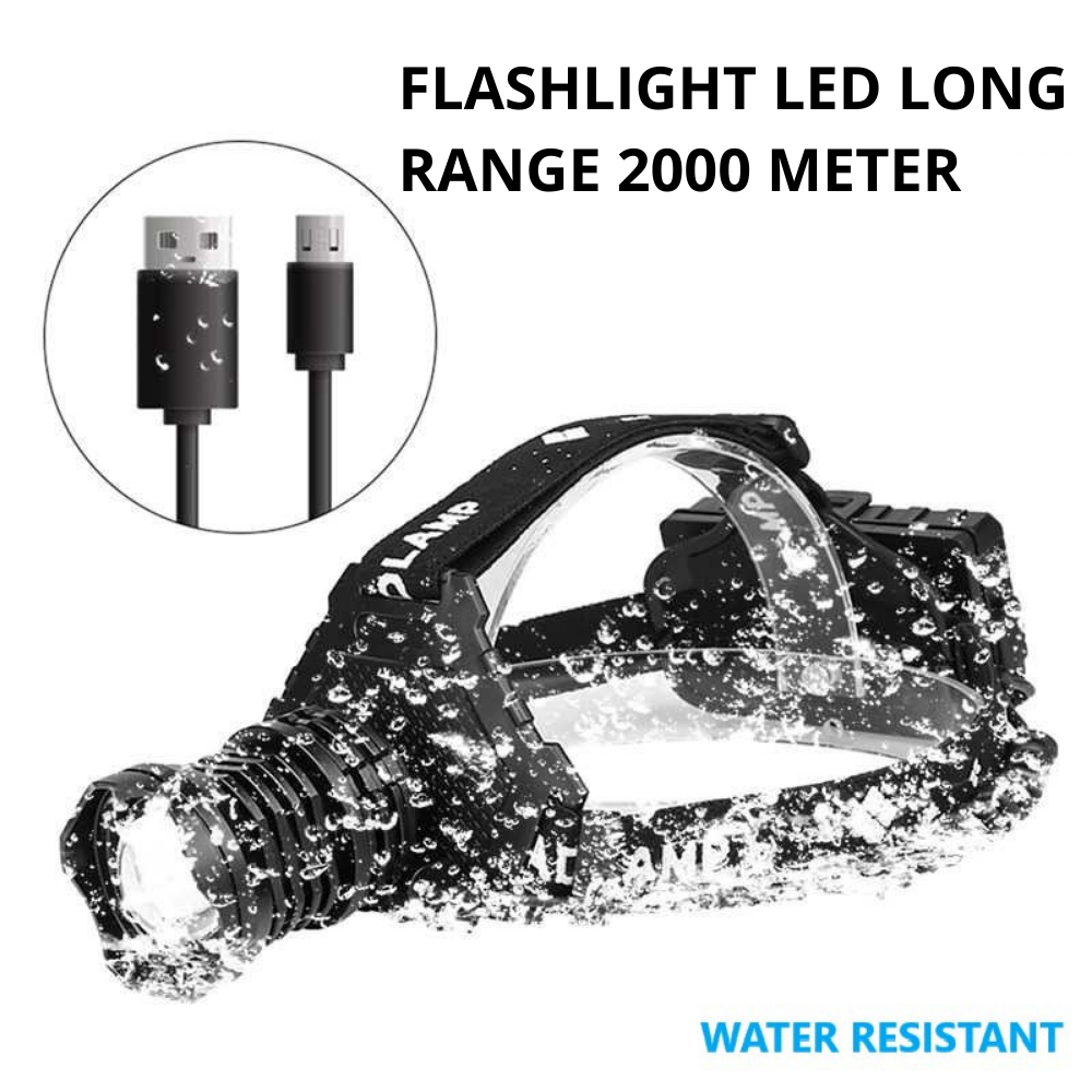Senter Kepala ORIGINAL X7000 Cahaya Zoom 2000 Meter / Senter Gunung Headlamp Bisa di Cas Isi Ulang USB