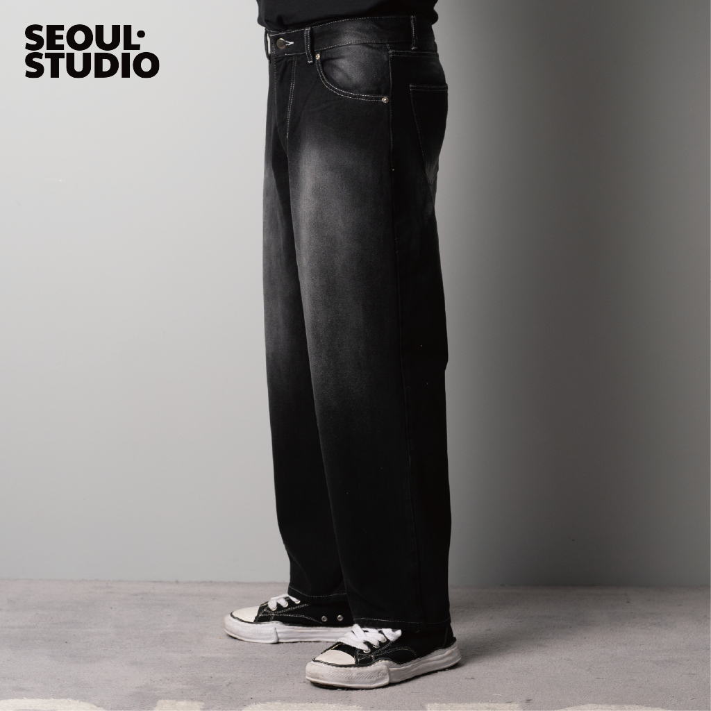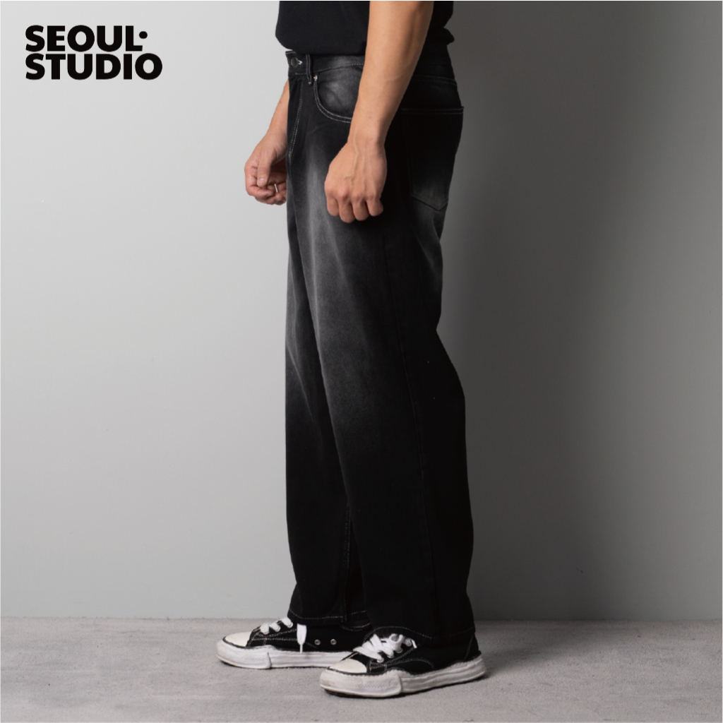 SEOULSTUDIO ITAEWON Black Washing Loose Fit Jeans | Pants Celana Denim Pria Cowok Gombrong Baggy
