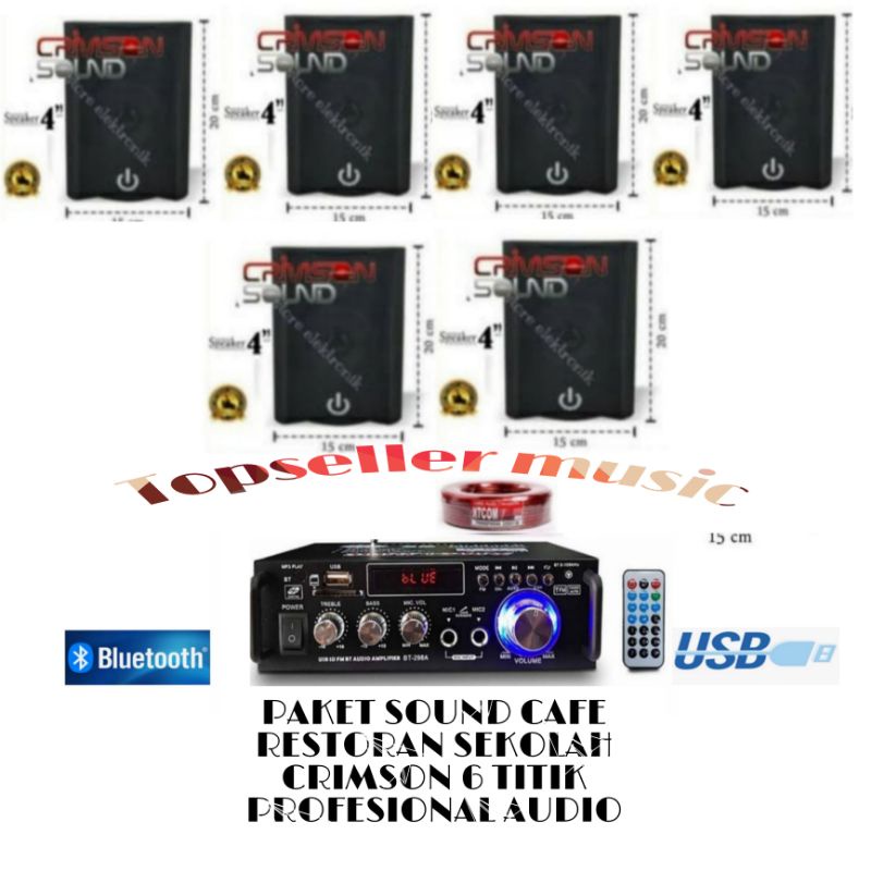 PAKET SOUND SPEAKER CRIMSON 6 TITIK CAFE RESTORAN KANTOR DAN SEKOLAHAN AMPLI USB BLUETOOTH+KABEL 1ROLL