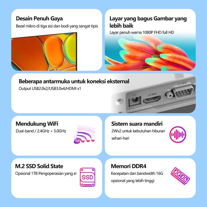 KOMPUTER ALL-IN-ONE PC BARU CORE I5/I3, RAM 8G/16GB, SSD 256GB/512/1TB GRATIS KEYBOARD+MOUSE - I5-3320/8+128G, 19 INCH
