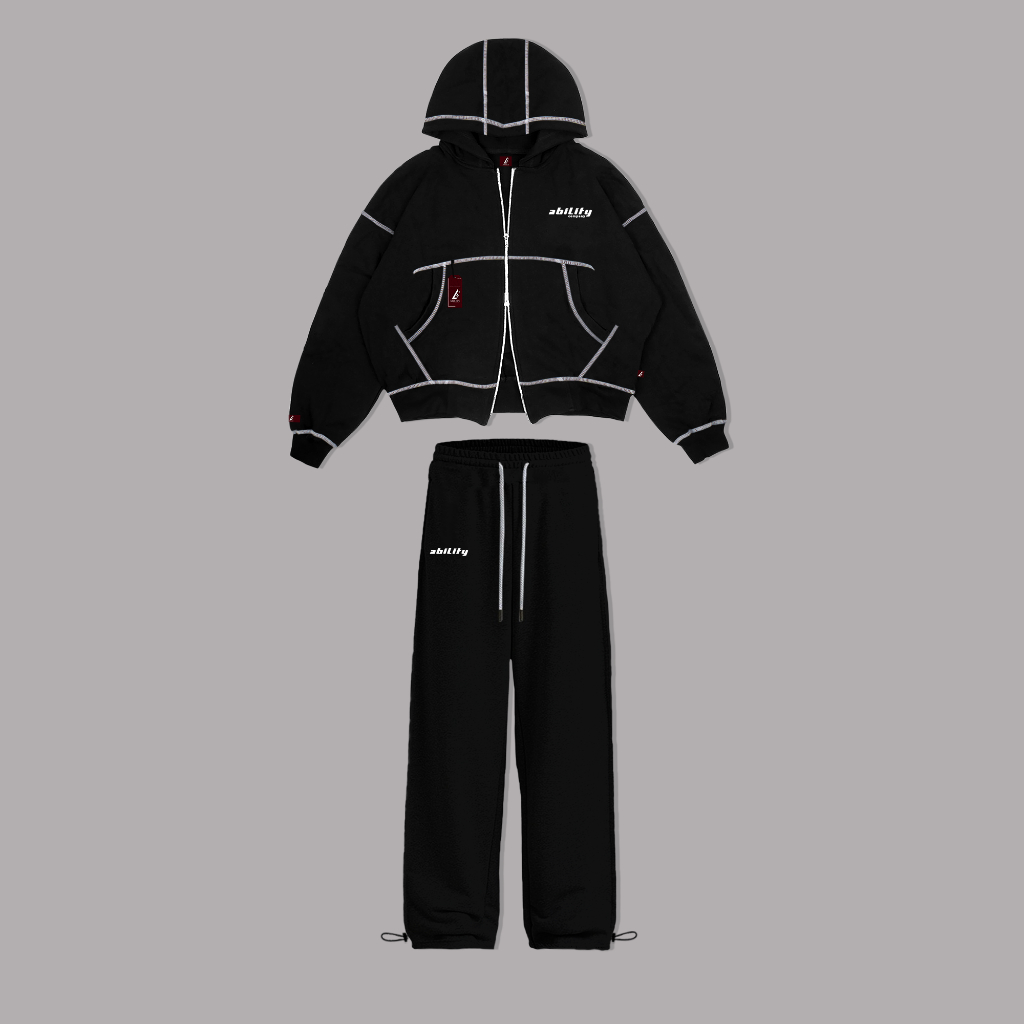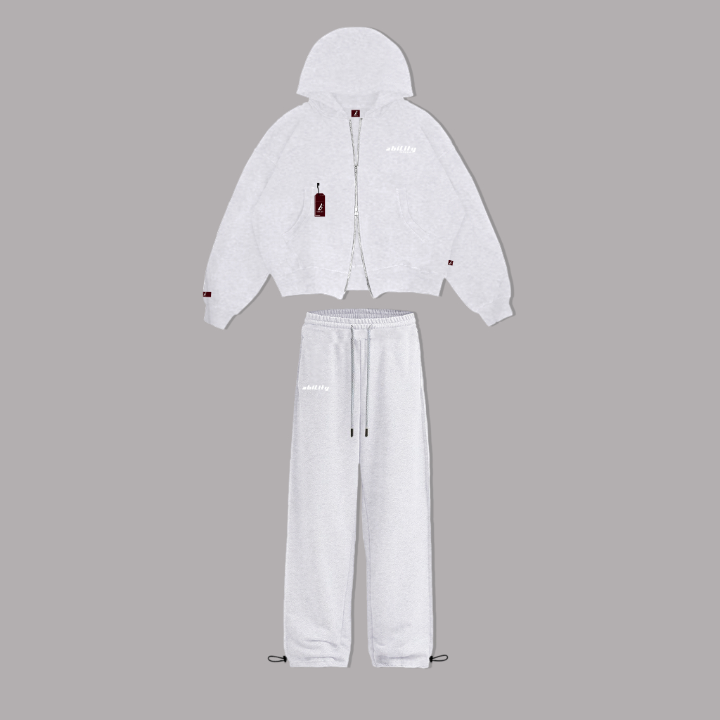 Ability One Set Double Zipper Boxy Hoodie + Baggy Sweatpants Basic Fleece 280 Gsm Size M L Xl Xxl