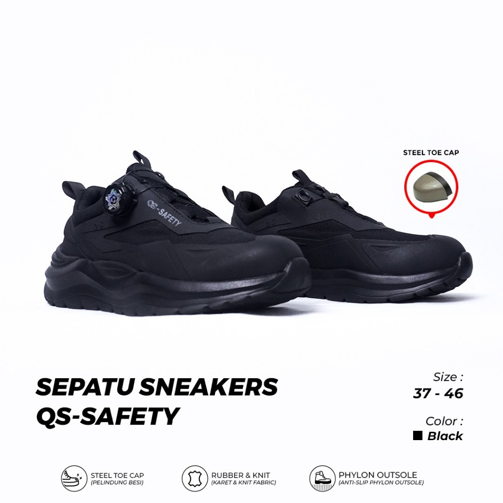 Sepatu Safety QS 2025 Ujung Besi Tali Putar Simple Shoelace | Anti Smash | Anti Slip Oil | Flexibel | Super Ringan / Sepatu Safety