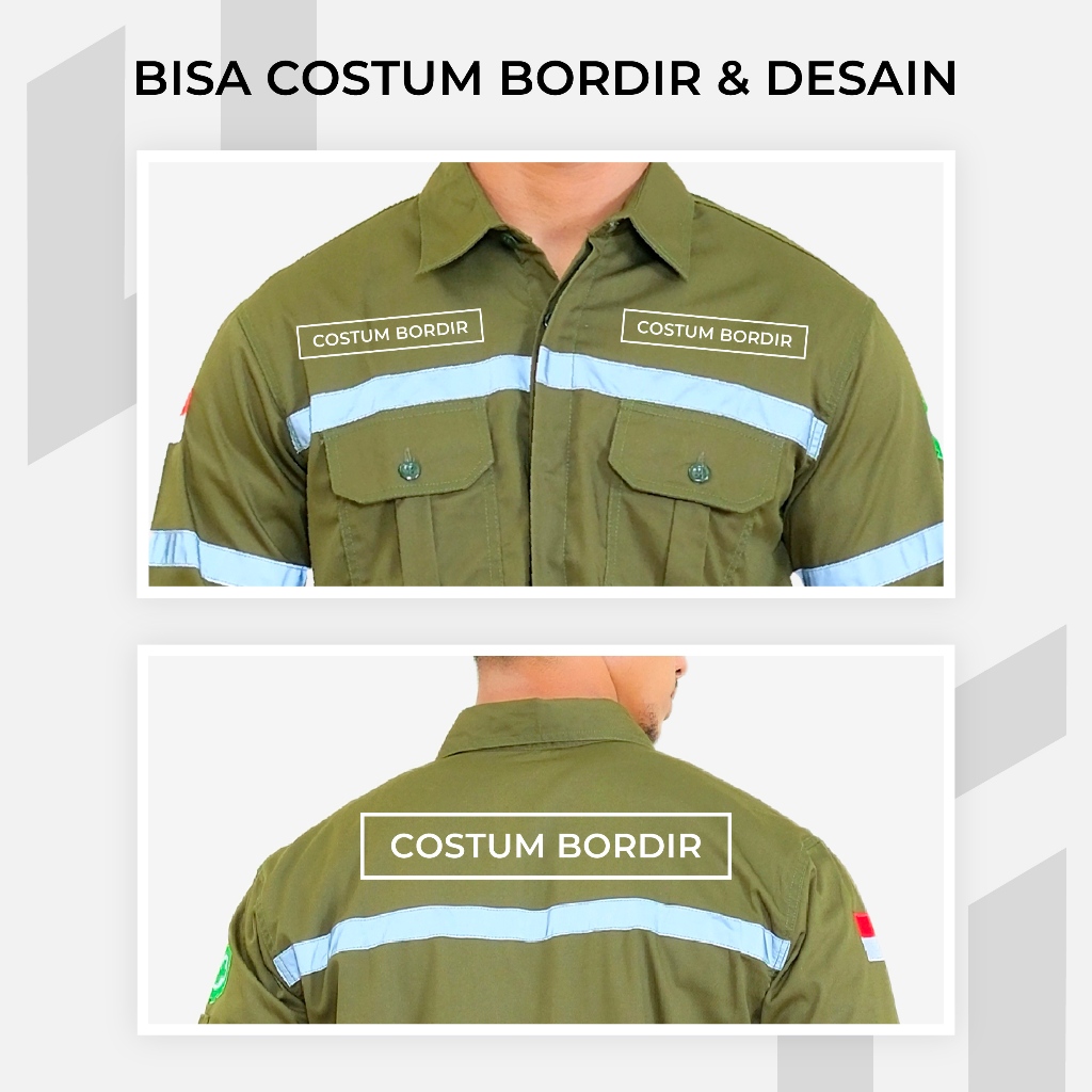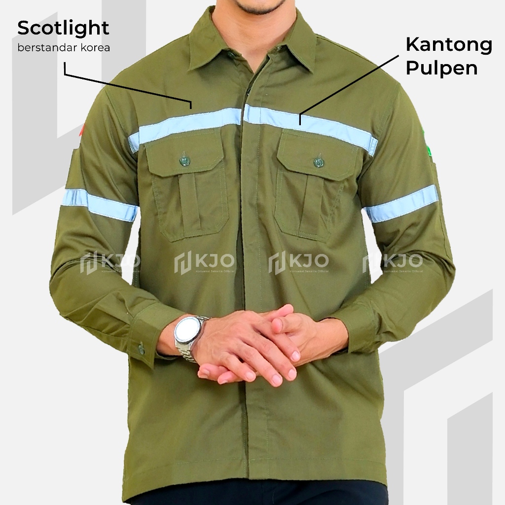 Baju Wearpack Kemeja Safety K3 Proyek Tambang Lengan Panjang - Pakaian Seragam Werpak Kerja Atasan Scotlite Lapangan Warna Hijau Army Pria Wanita