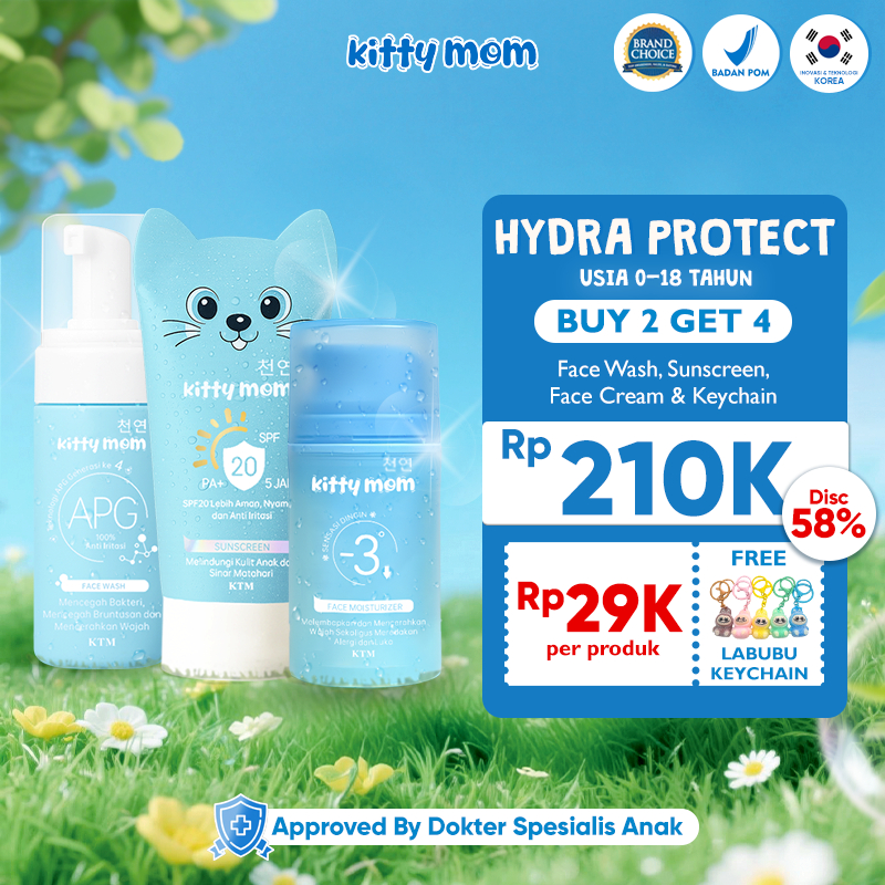 Kitty Mom Paket Skincare Bayi Anak Newborn | Face Wash Sabun Cuci Muka Anak, Moisturizer Wajah Sensitif, Sunscreen Baby