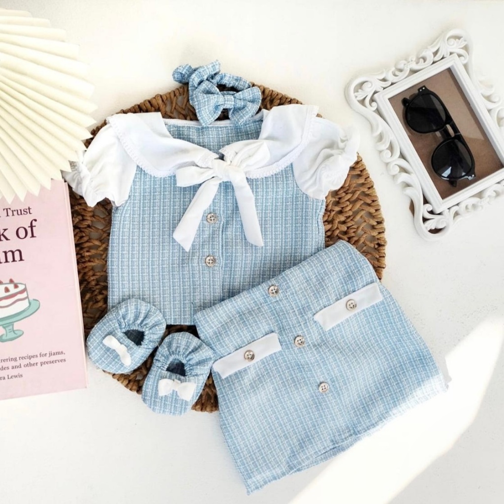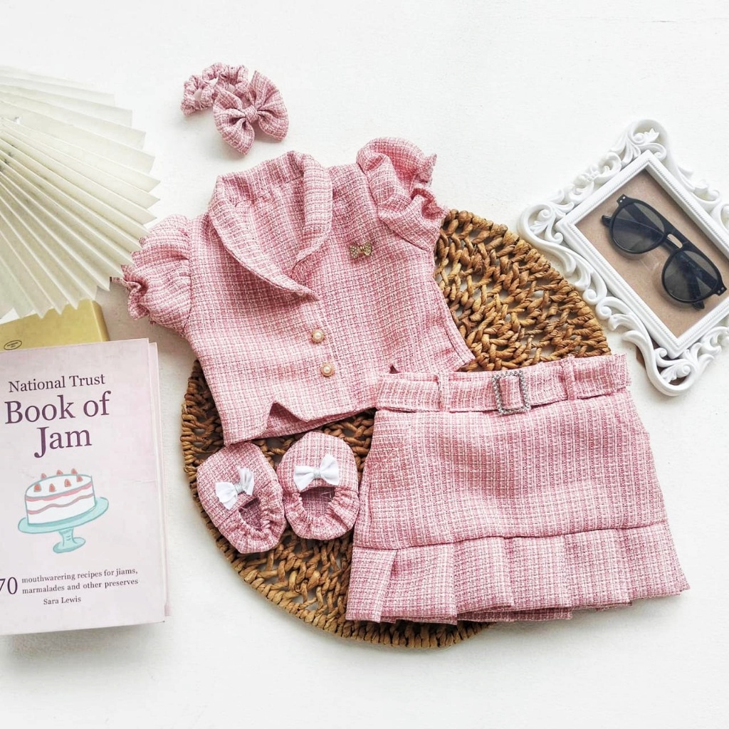 baju bayi 0 6 bulan setelan rok tweed kerah baby girl set perempuan murah SNI