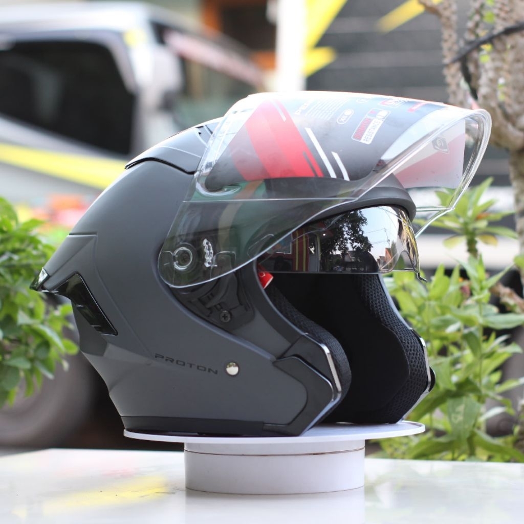 Helm hrv proton solid half face Proton double visor 2 kaca