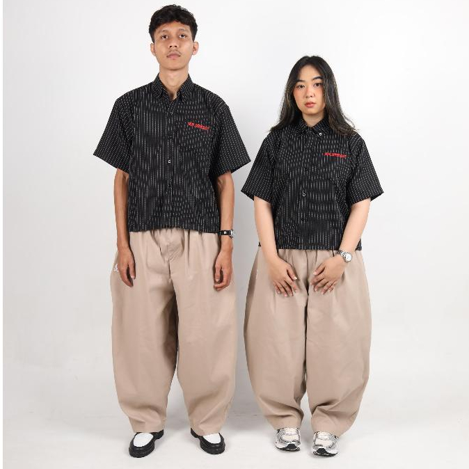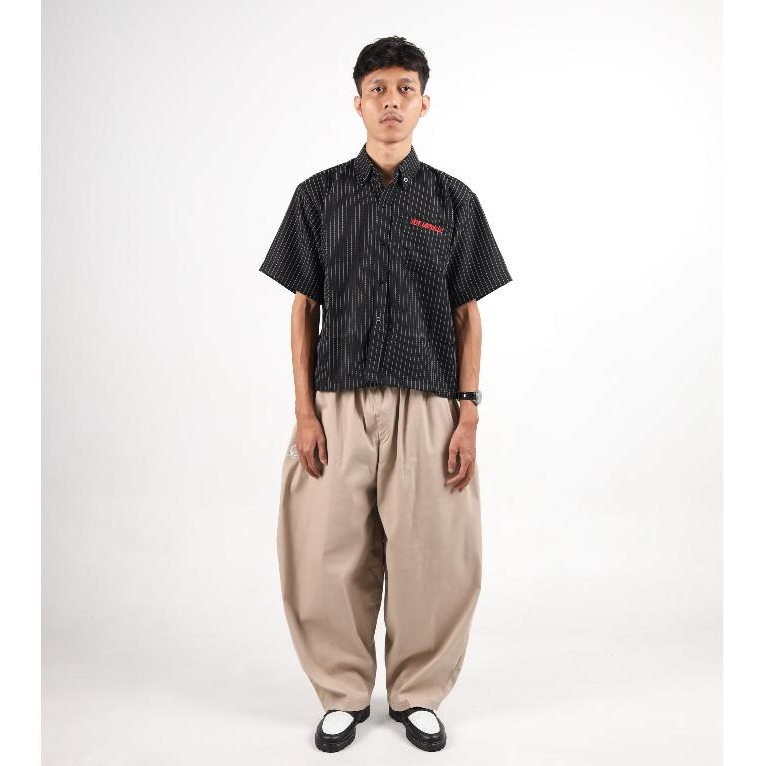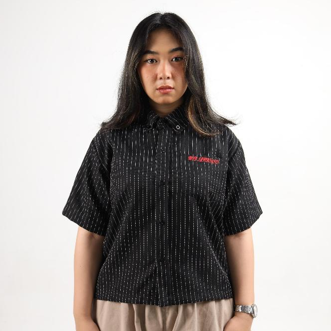 Shirt Boxy Stripe - Geld Importaint | Black Stripe | Kemeja Pendek Stripe Pria Dan Wanita