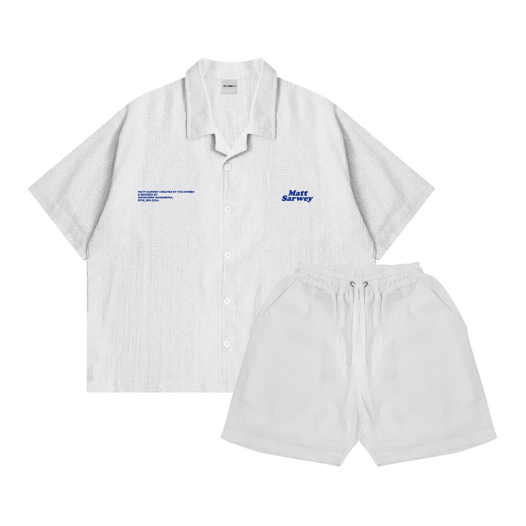 Matt Sarwey - Kemeja Kerah Terbuka | Kemeja Boxy Lengan Pendek | Kemeja Cuban Bowling One Set Florian Putih