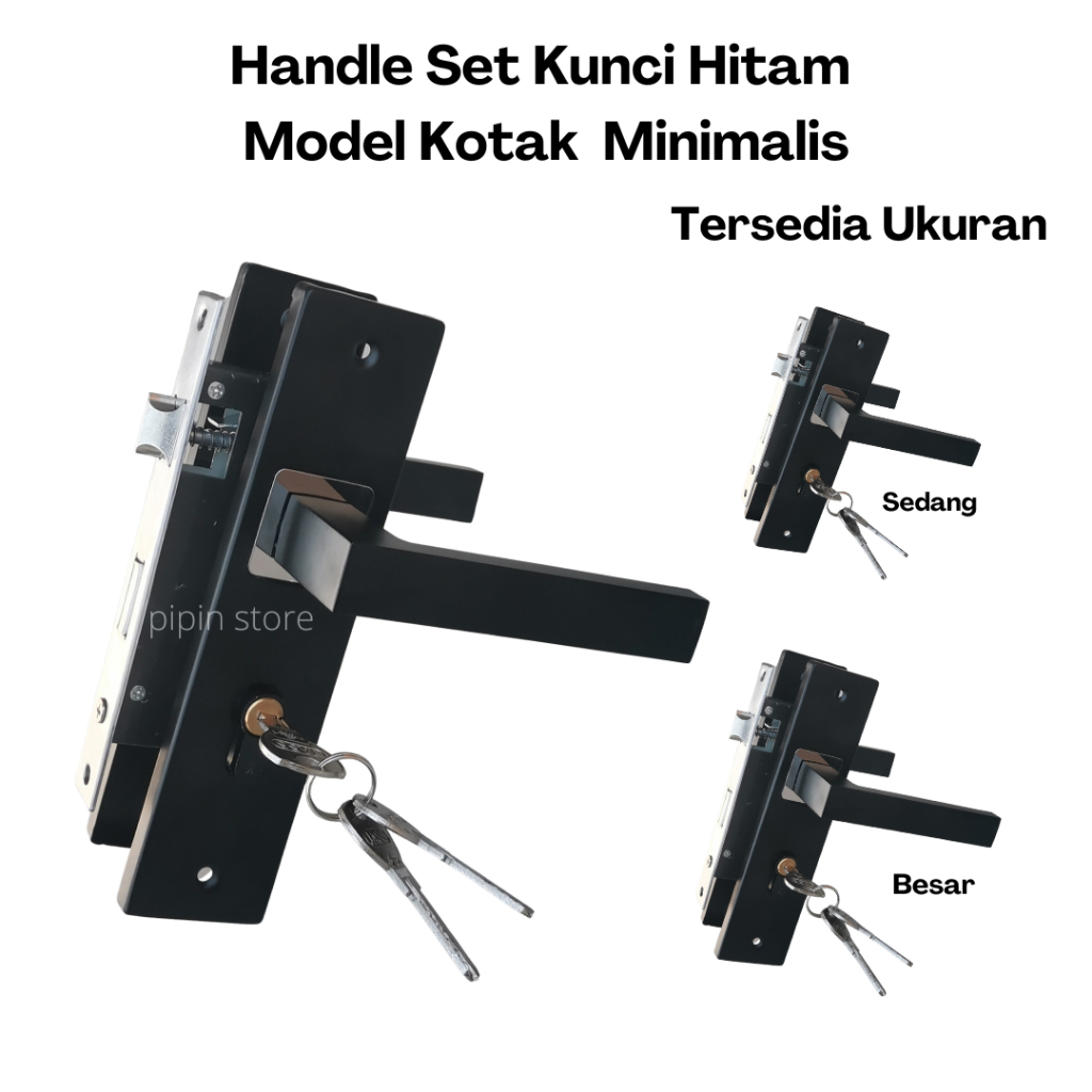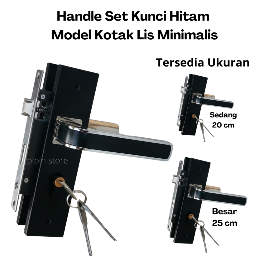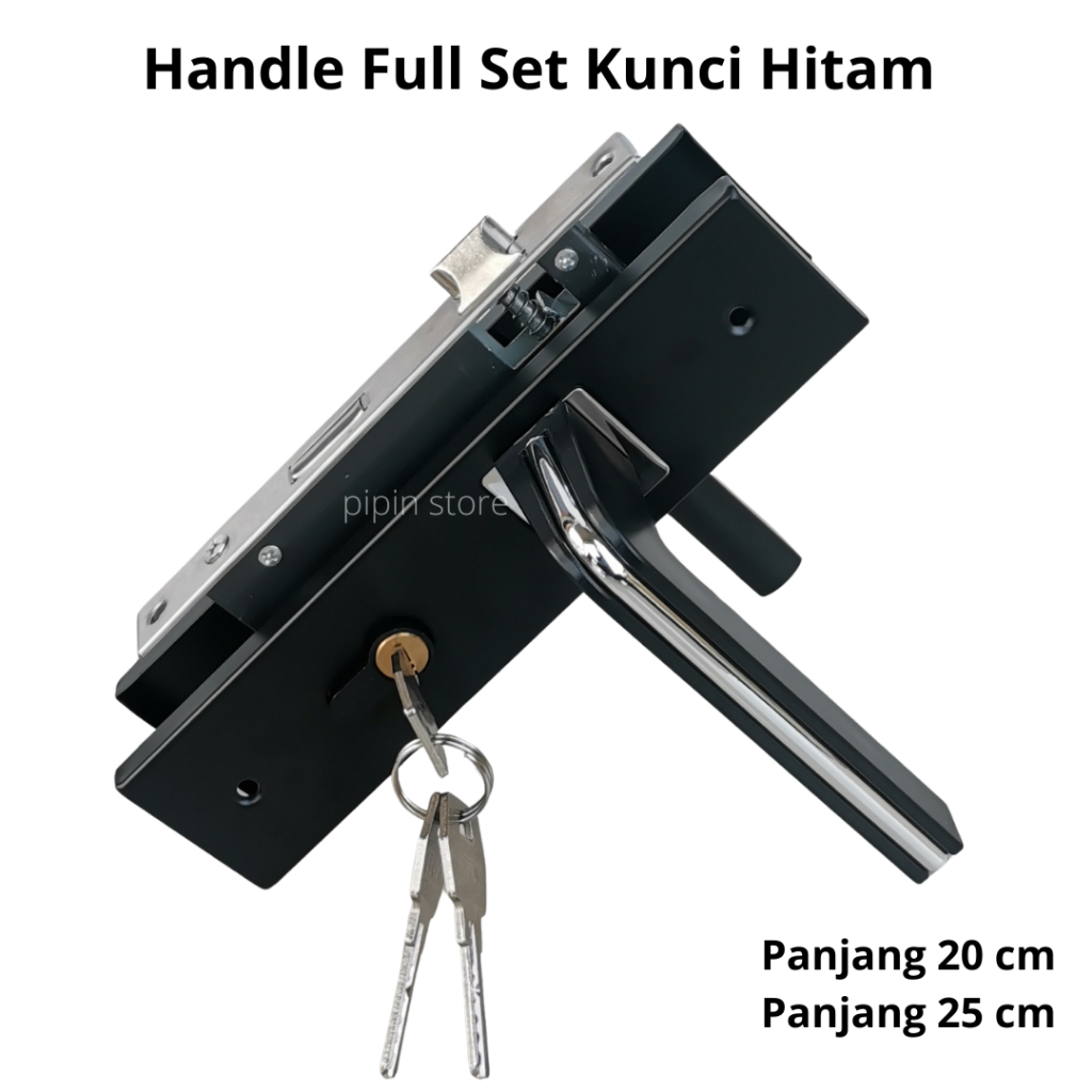 Handle Set Kunci Pintu Hitam Ring Silver Ukuran Besar 25 cm Tanggung 20 cm Minimalis Gagang Hendel Handle Kamar Utama Komplit