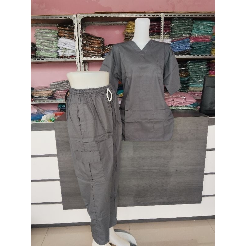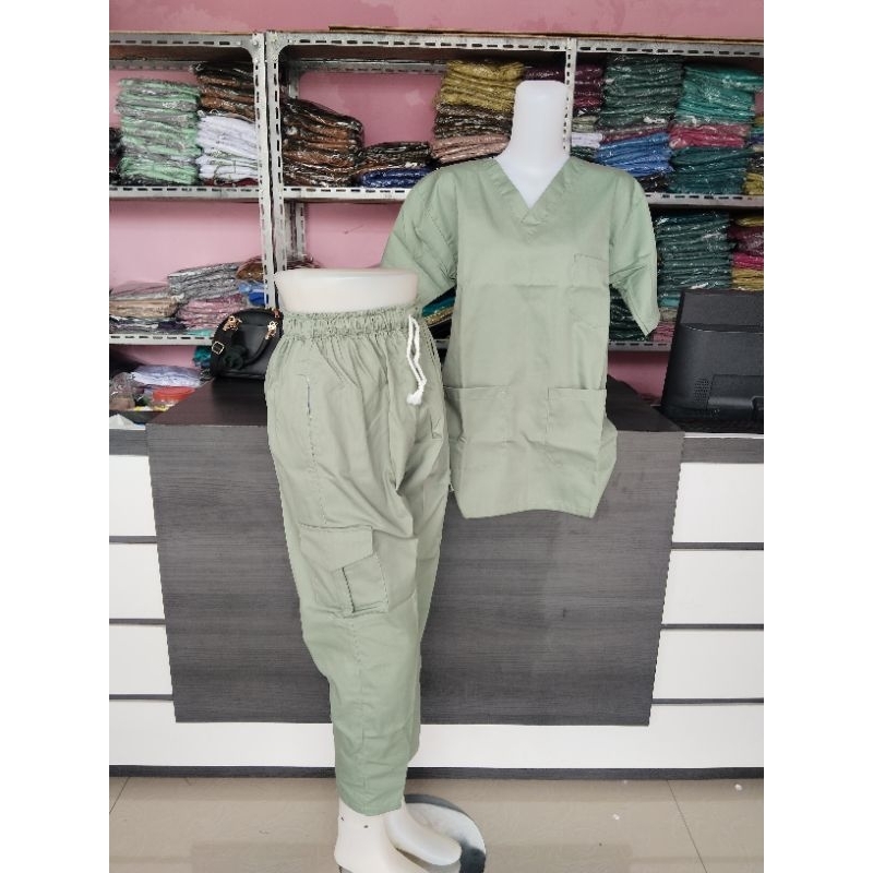 1 SET baju celana topi Baju Oka OK Lengan pendek Stelan celana Cargo Varian Pria-wanita