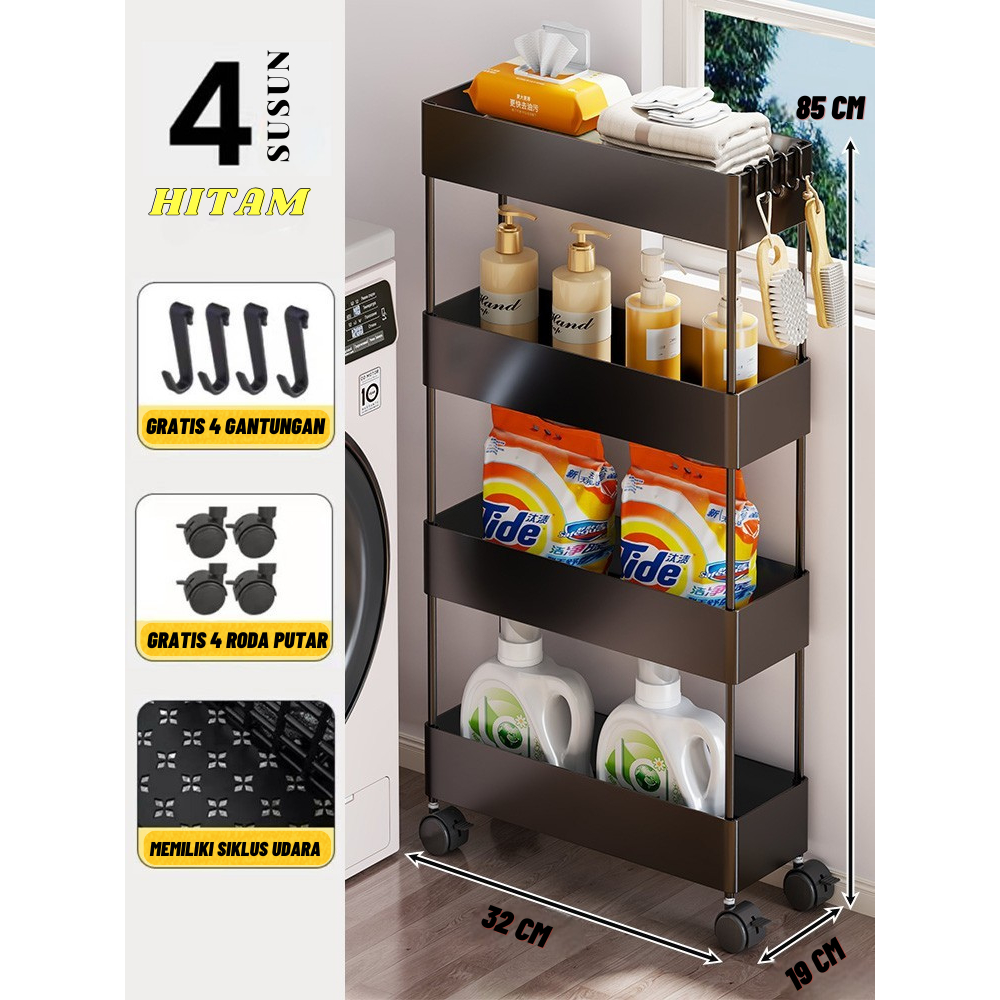 Square Rak Dapur Rak Toilet Rak Susun Serbaguna Rak Dorong Rak Salon Rak Troli 4 Tingkat Dengan Roda
