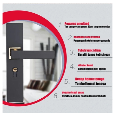 Handle Pintu Hitam Set Gagang Pintu Rumah Minimalis Komplit Ukuran Besar 25 cm Tanggung 20cm