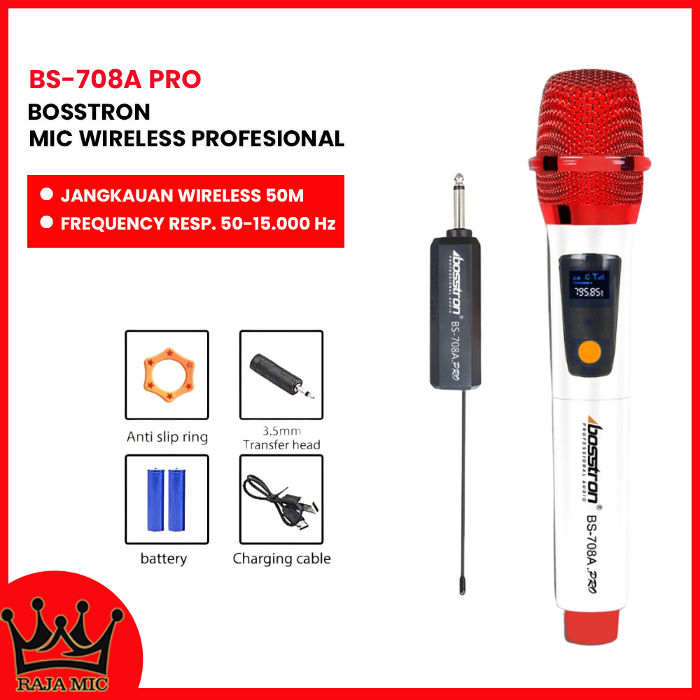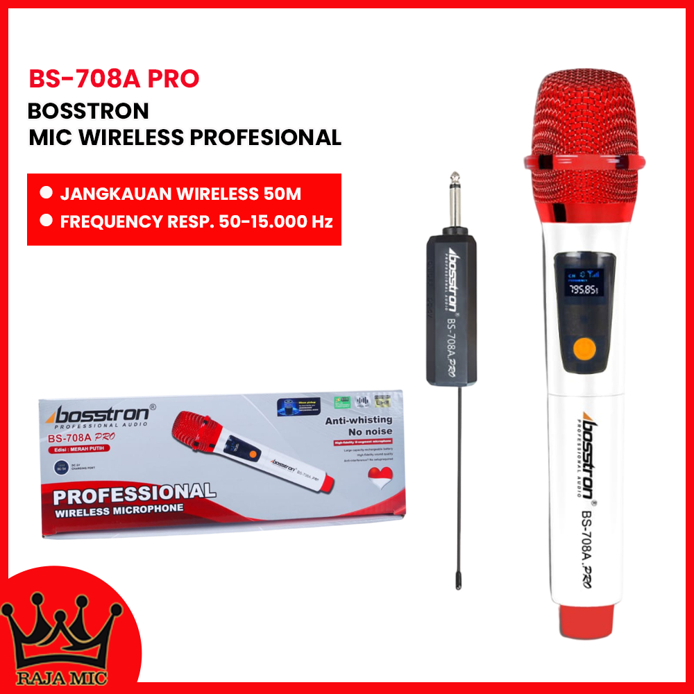 Bosstron Mic Wireless Karaoke BS-708A PRO Merah Putih Mik Mikrofon Bluetooth Microphone Tanpa Kabel