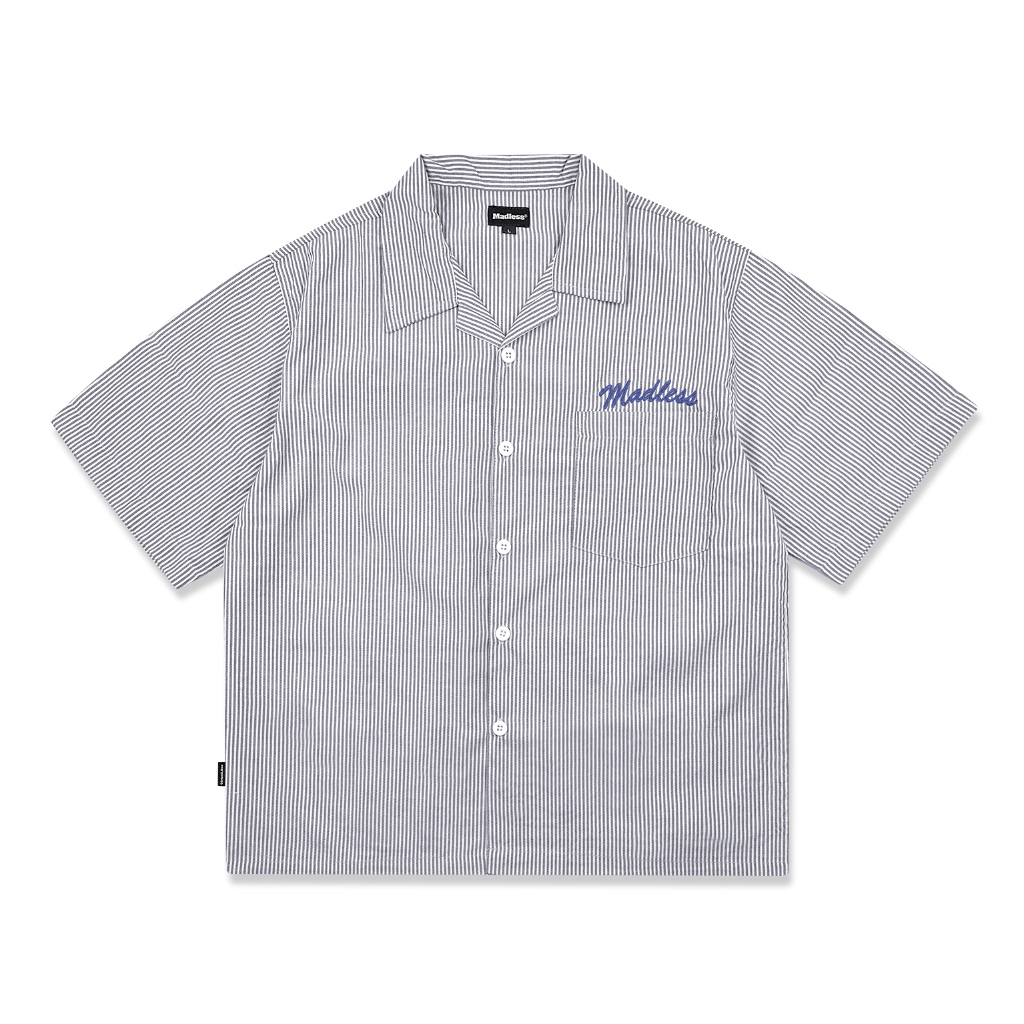 Madless | Kemeja Lengan Pendek Stripe Boxy | Crop | Stripe Bw