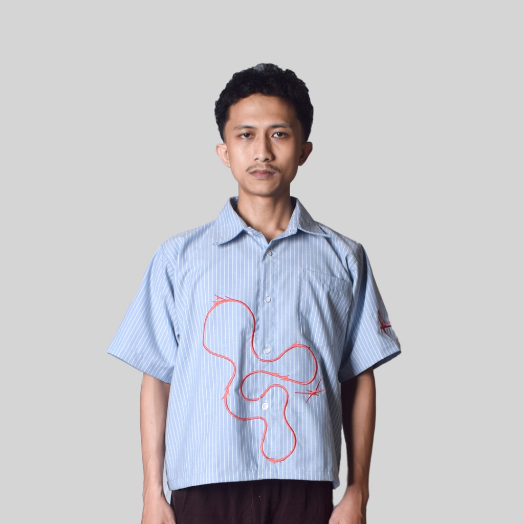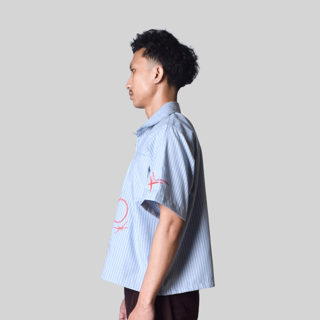 Camelot - Celsies Shirt Kemeja Biru Garis Putih Boxy Blue White Strip Boxy Shirt Kemeja Salur Biru Kemeja Motif Kemeja O
