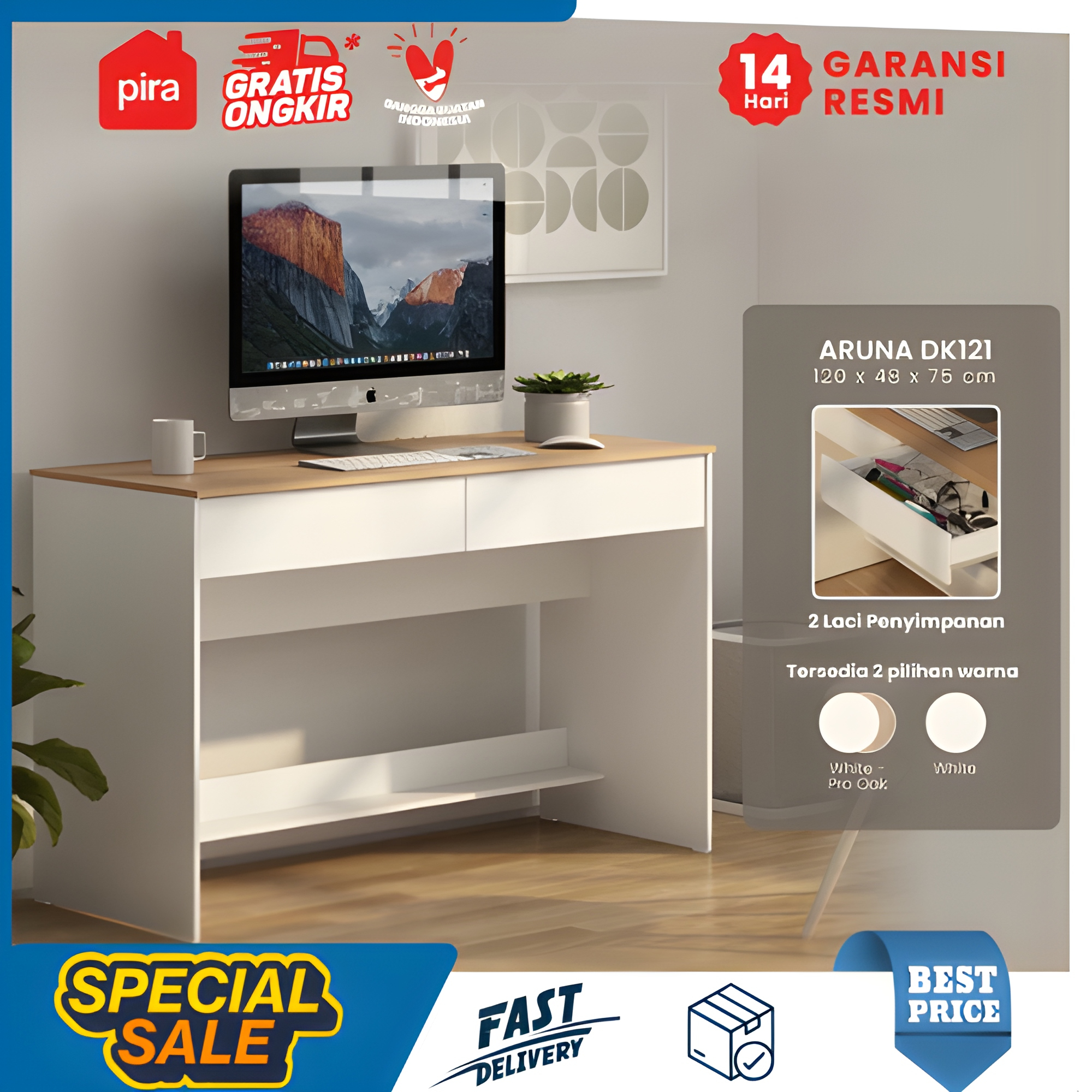 [Mall] Meja belajar anak Pira Metropolis OX-Aruna DK121 laci laki laki/perempuan berkualitas minimalis set kursi lipat