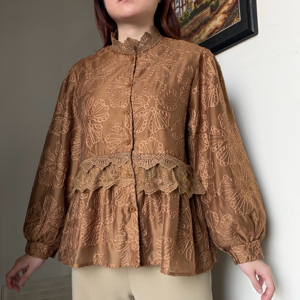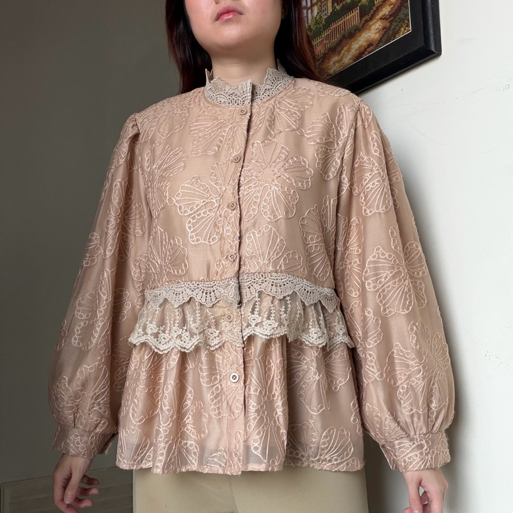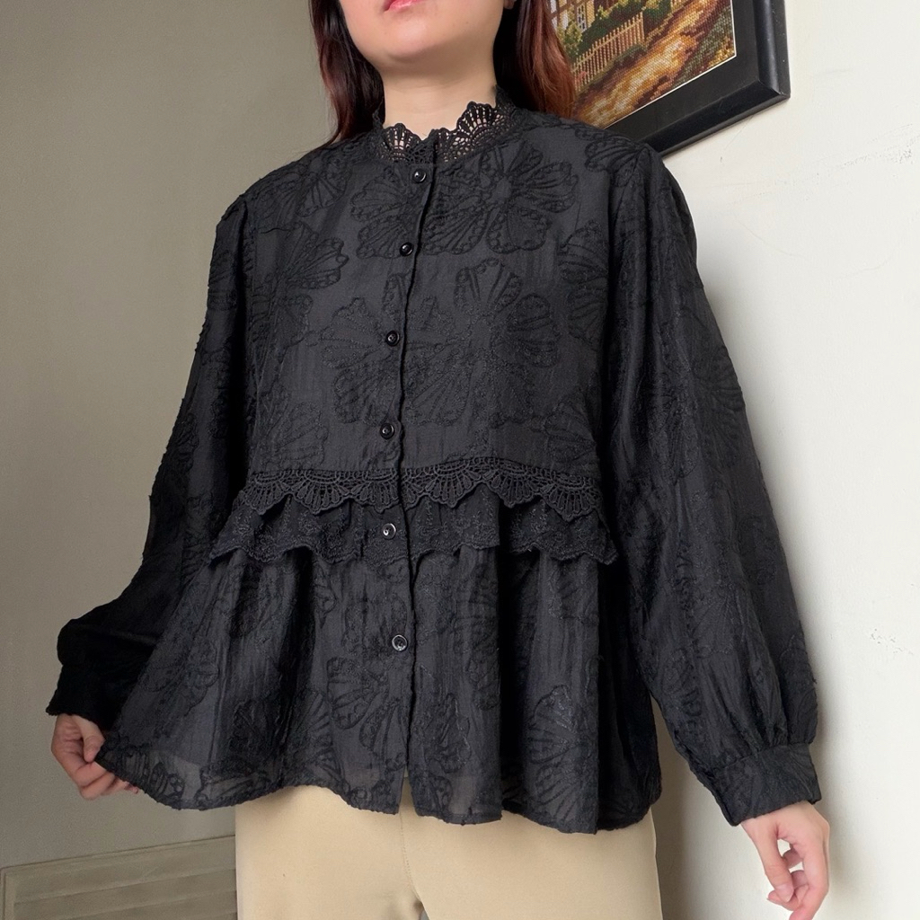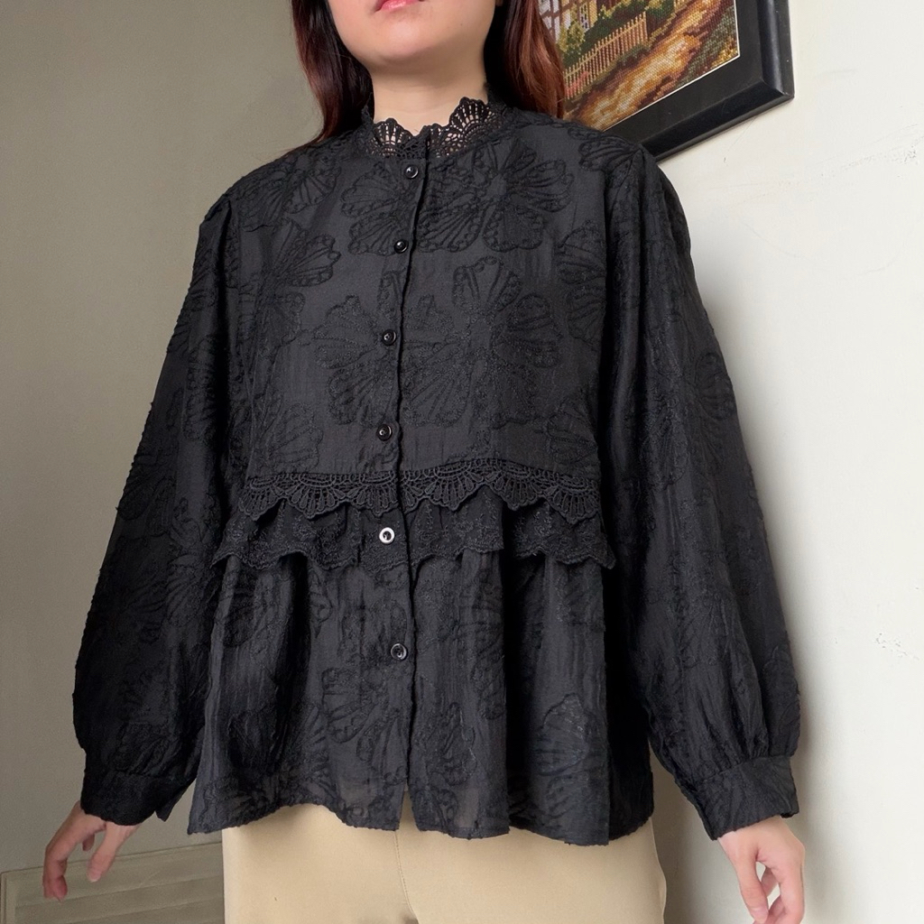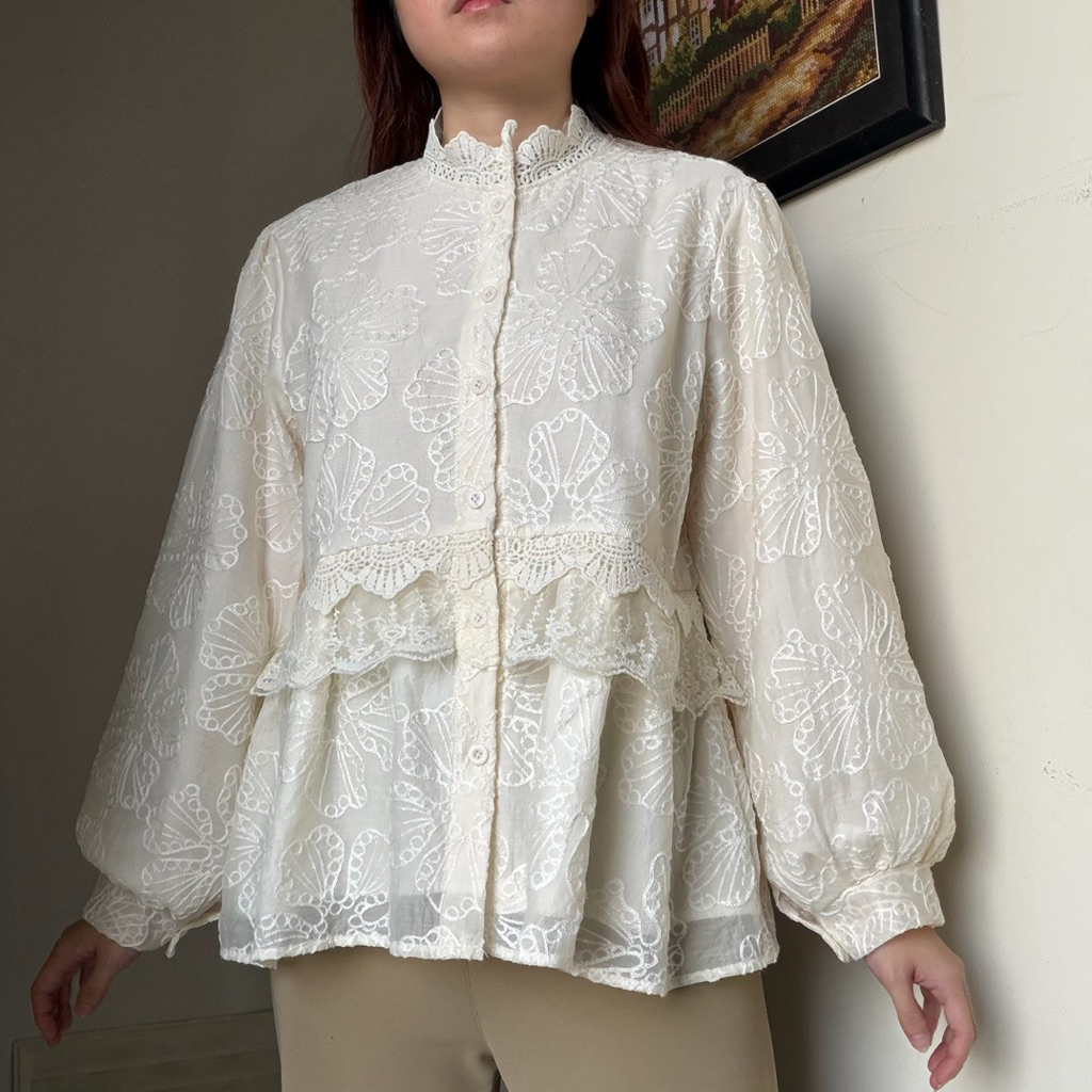 Zetta Top Atasan Kemeja Blouse Wanita Kerja Viral Korean Style Kondangan Wisuda Katun Bordir By Biel The Label