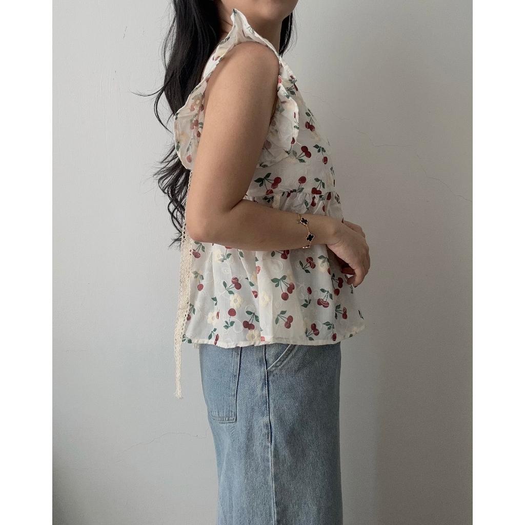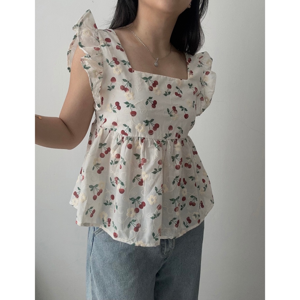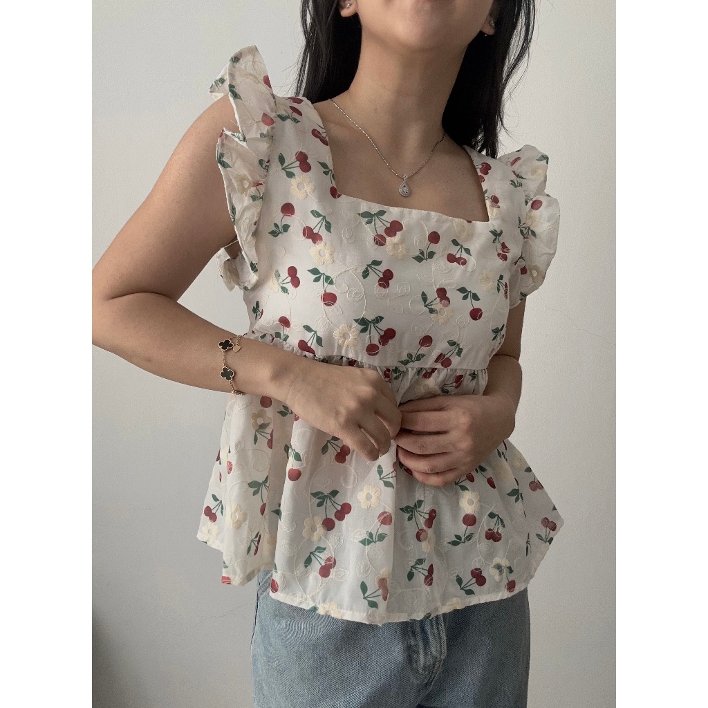 Shop Marra Cherry Top Vintage Ruffle Peplum