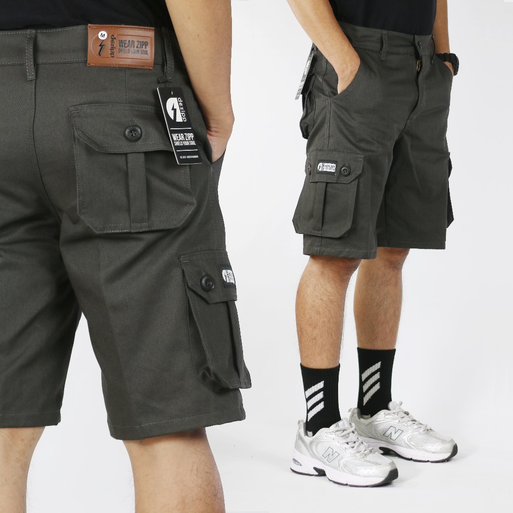 Dezipp Celana Cargo Pendek Pria Original Warna Abu Tua Size 27-42 Bahan Premium Quality Celana Kargo