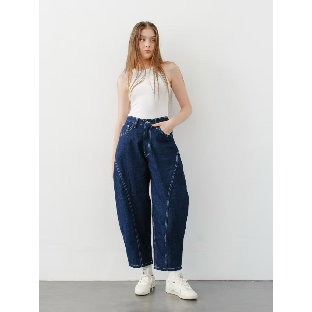 Celana Japanes Baggy Barrell Jeans Cowok Cewek Pecah Pola