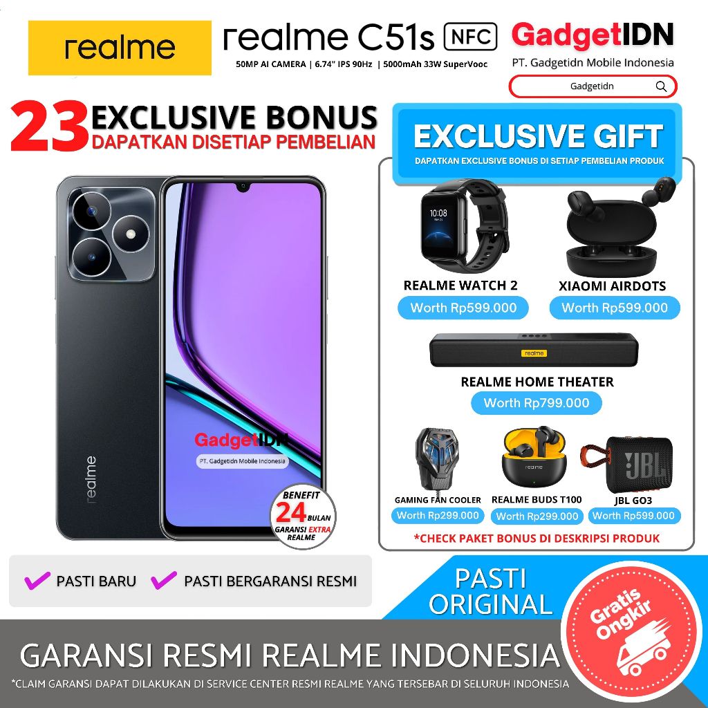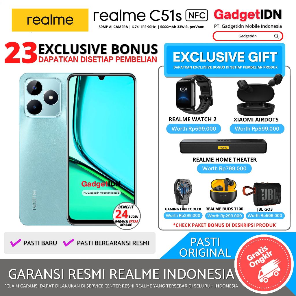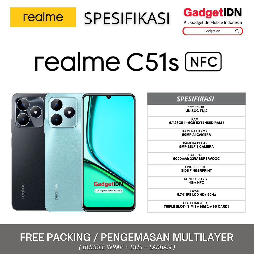 REALME C51s NFC 6/128GB ( +6GB Dynamic Ram ) Garansi Resmi Realme