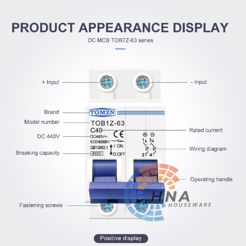 MCB DC 2P 440V TOMZN 10A 16A 20A 25A 32A 40A 50A 63A circuit breaker