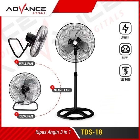 Advance TDS18 Kipas Angin Besi Tornado Dinding / Meja / Berdiri 18 inch 3 in 1
