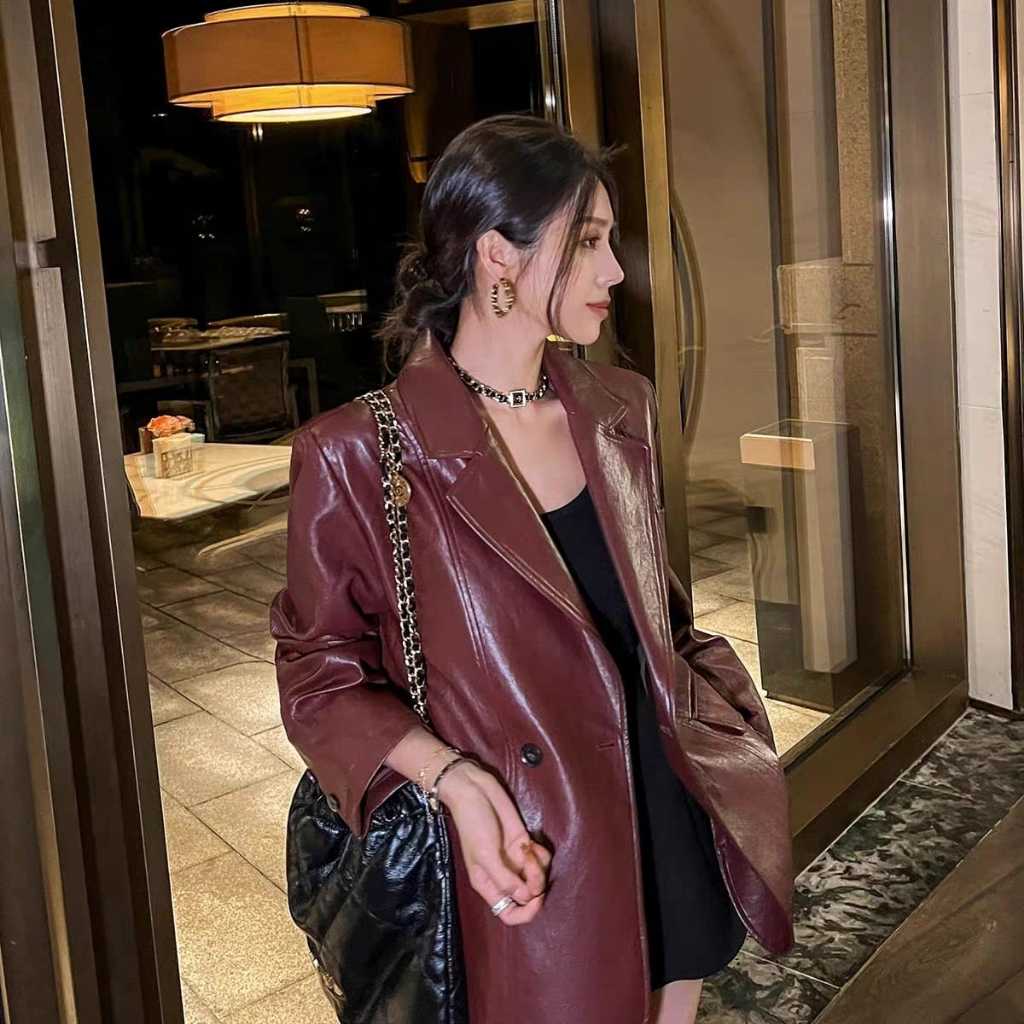 Ethel Couture - Tiffany Rb Leather Jacket - Luaran Pakaian Kulit Wanita Panjang Kasual Formal Daily Office Party Merah M