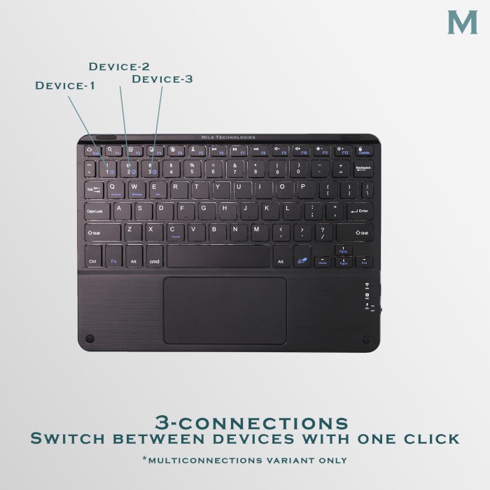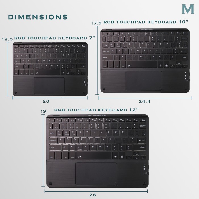 Mils Technologies RGB Backlit Touchpad Bluetooth Keyboard for iPad Universal Device