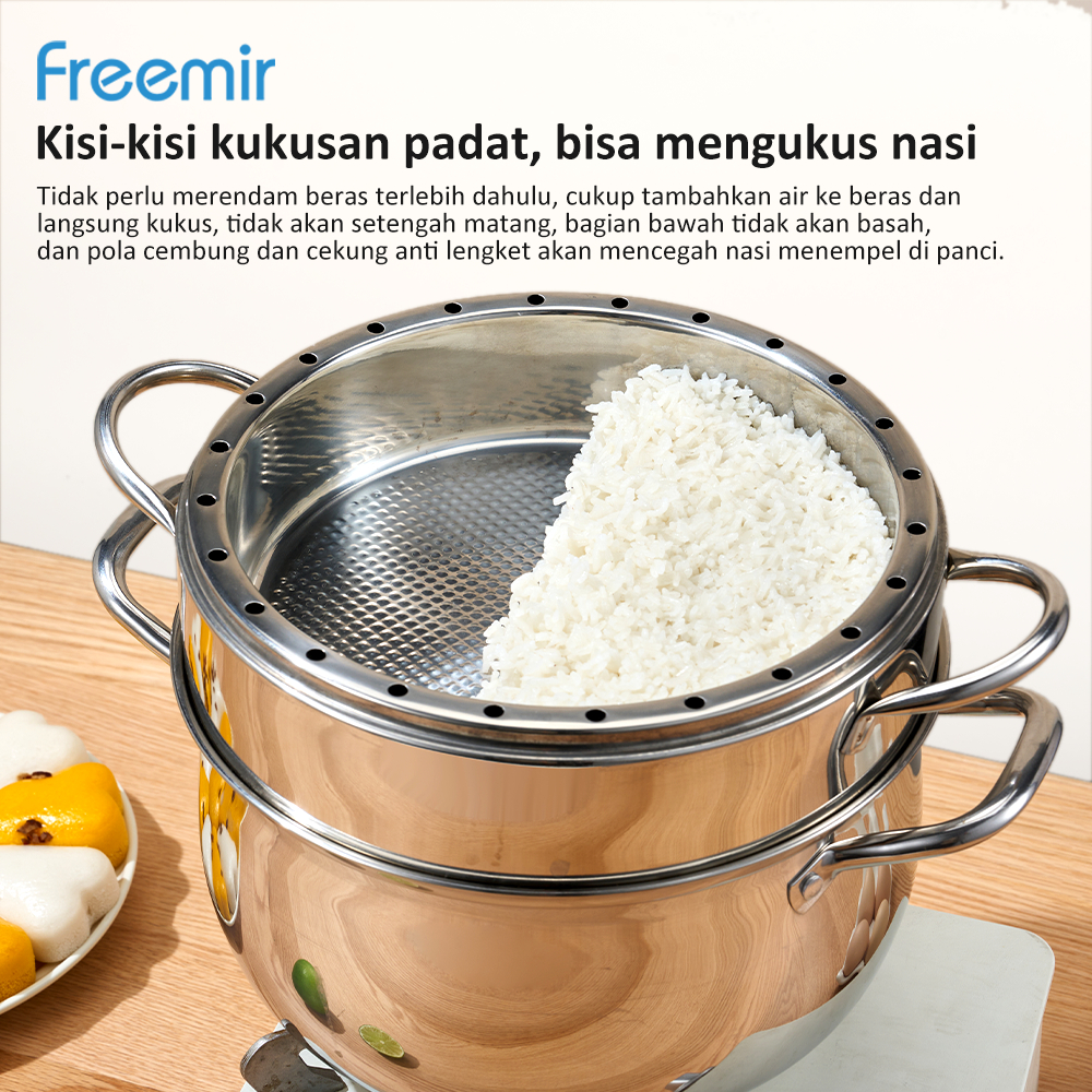 Gratis Ongkir freemir Panci Kukus 2 Tingkat 26cm Kukus Nasi 20 Menit Panci Stainless Steel Multifungsi Panci Steamer