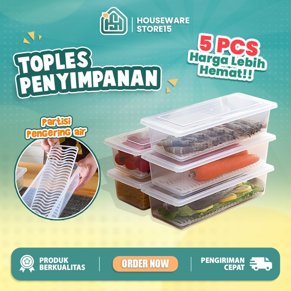 (SET ISI 5) Toples Panjang Serbaguna / Wadah Penyimpanan Sayur Ikan Snack Serbaguna Toples Sayur Toples Buah Toples Serbaguna